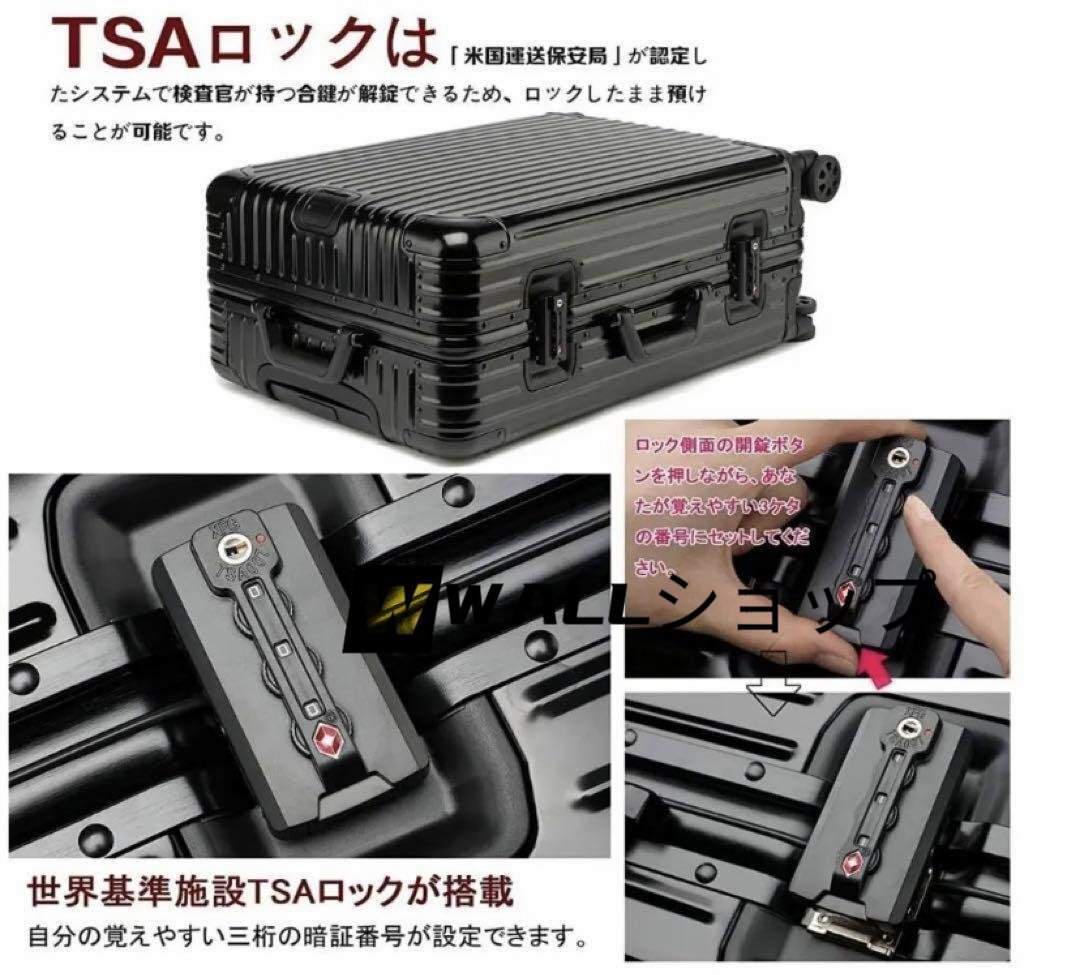 ■【TSAロック】アメリカ運輸保安局 TSA(Transportation Security Administration)によって認可、施錠したまま空港で預けることができます。TSAロックの鍵は税関検査のスタッフが持つマスターキーなので、付属しておりません。