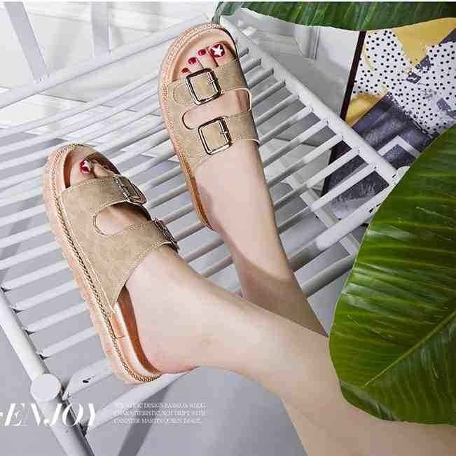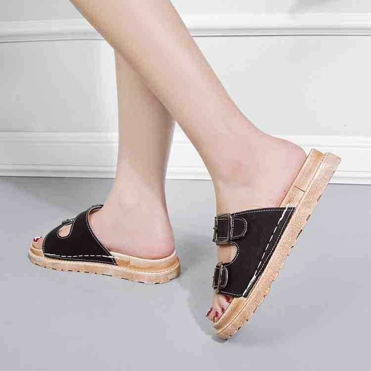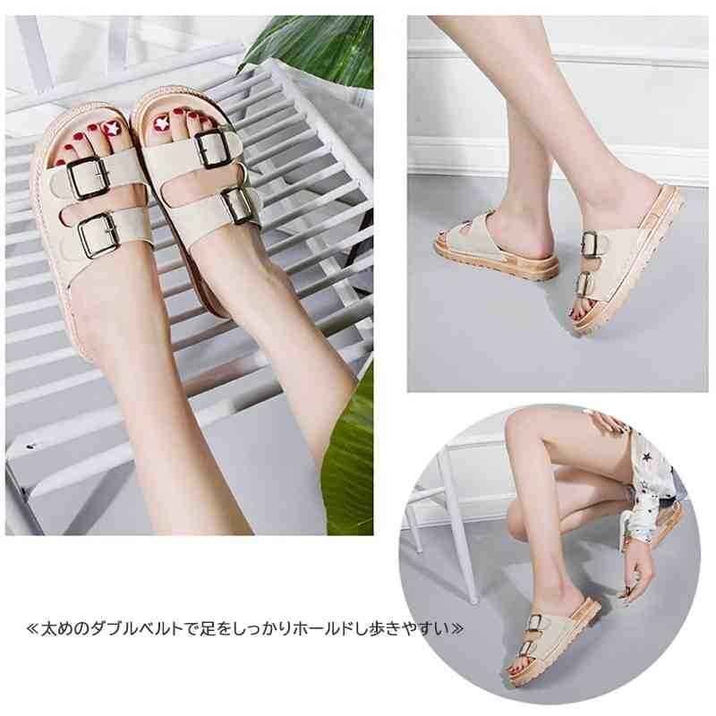 ・太めのダブルベルトで足をしっかりホールドし歩きやすい。