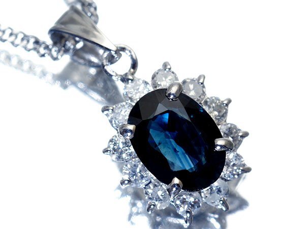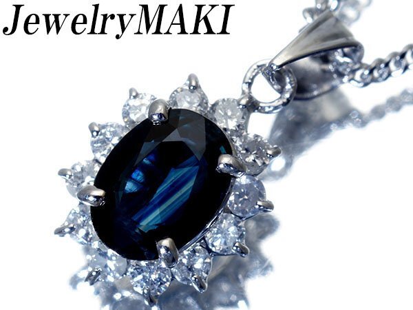 高級ジュエリーブランド【ジュエリーマキ】から、濃厚な色合い放つ良質天然ブルーサファイア0.89ct&ダイヤモンド総計0.27ctを素敵に宝飾した、高級Pt850ペンダントネックレスを1円から特別大放出致します!