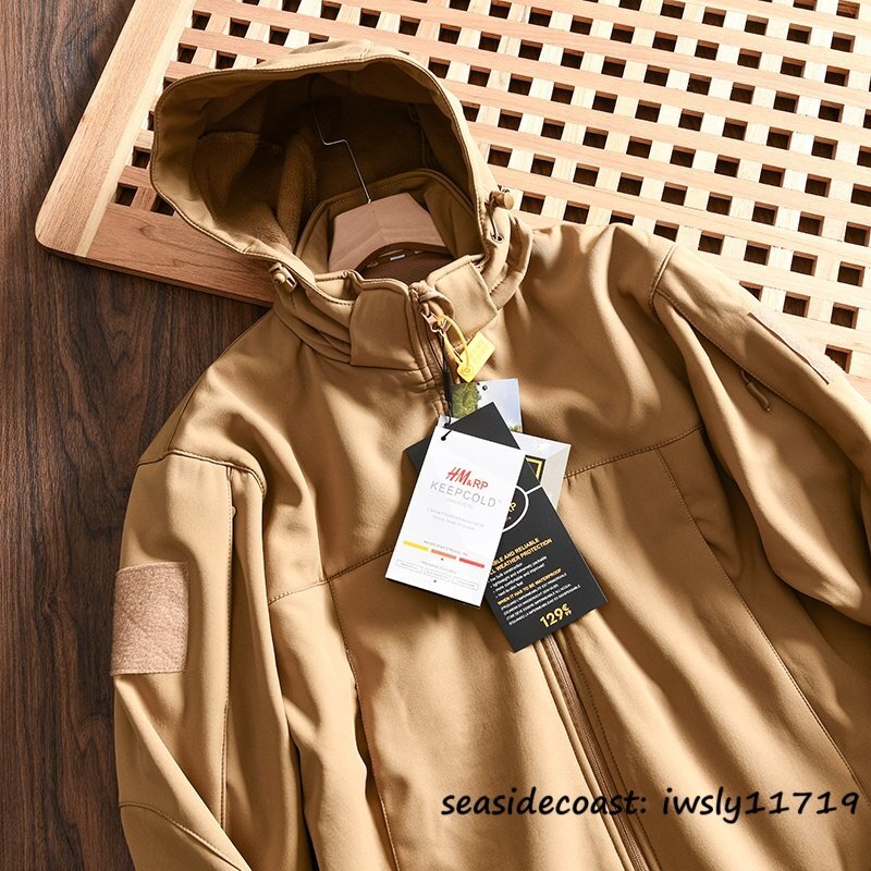 フリースジャケット メンズ フード付き マウンテンパーカ ソフトシェル ブルゾン 裏起毛 厚手 撥水 防寒 防風 秋冬 ブルゾン カーキ 2XL