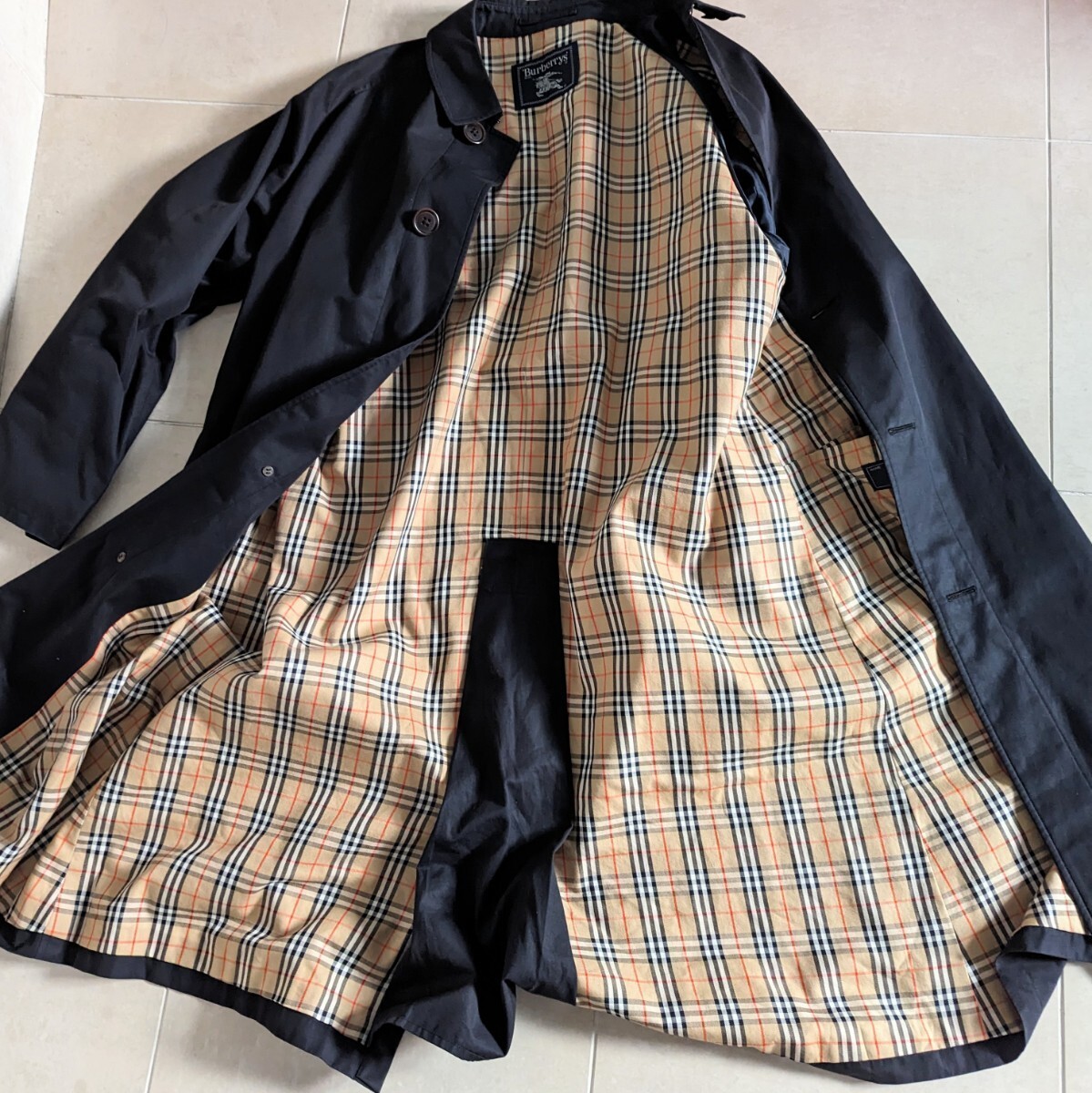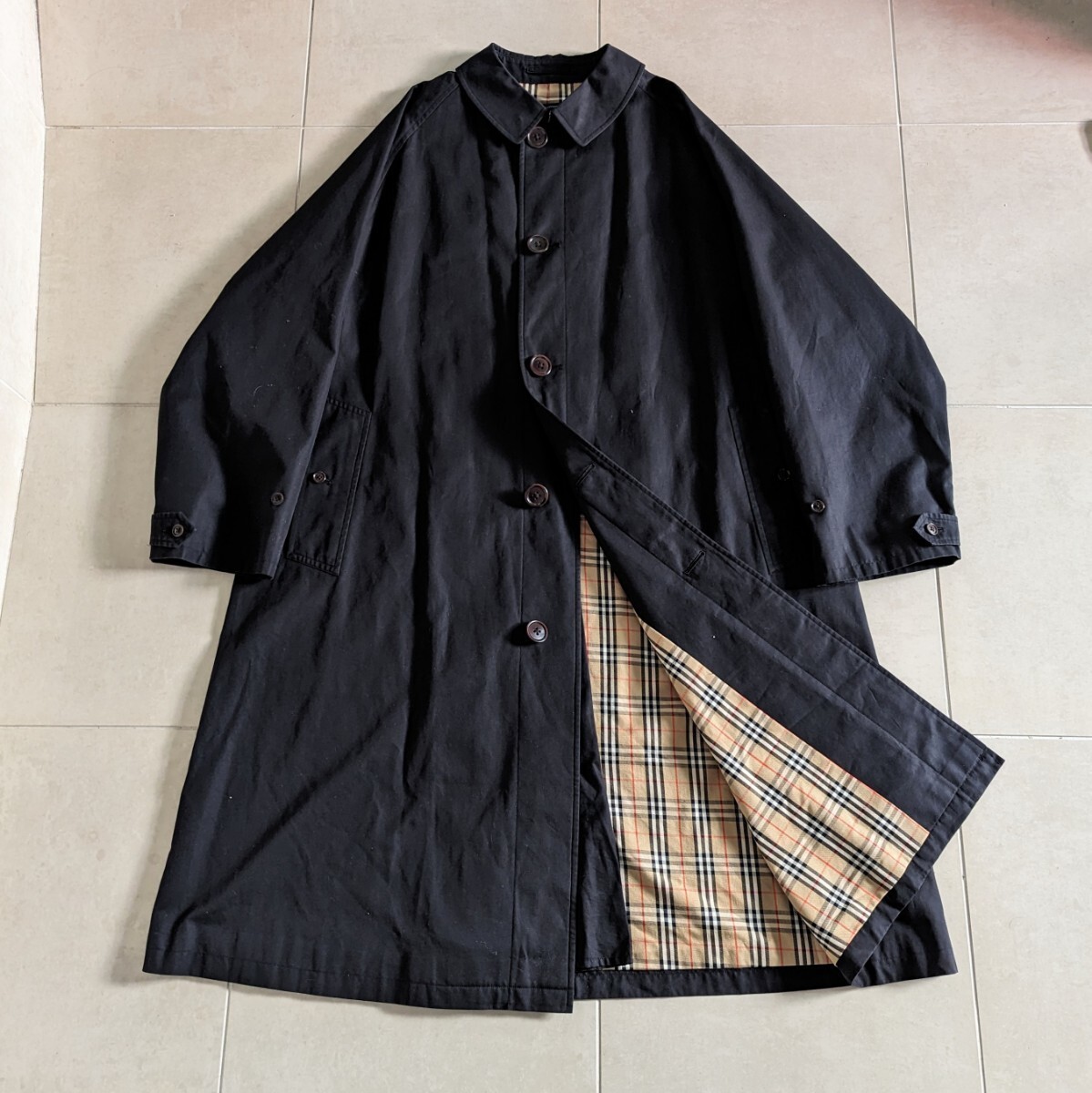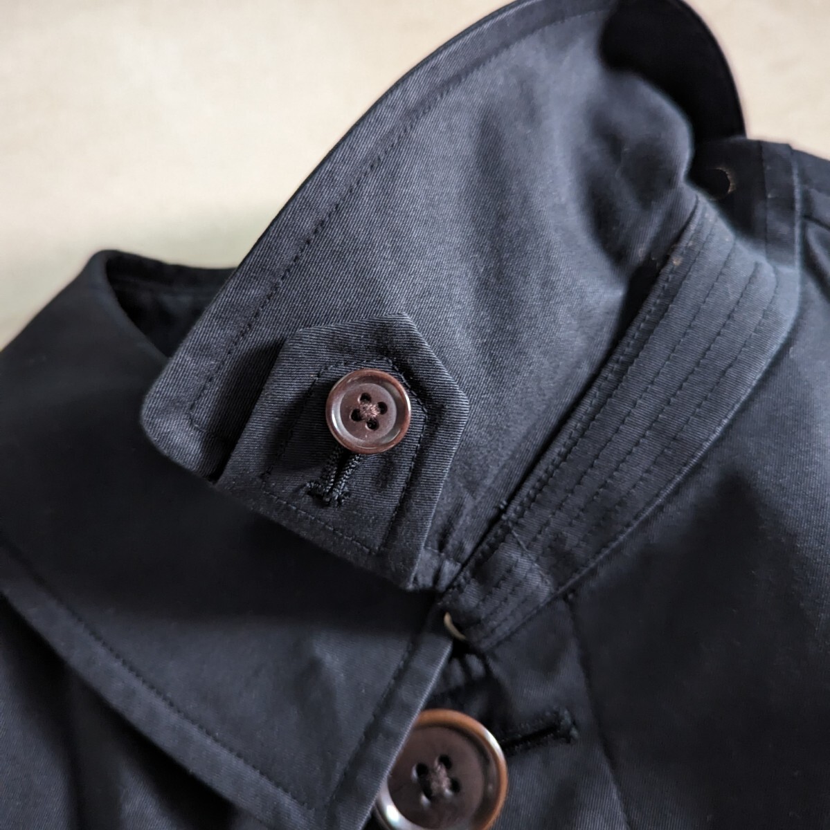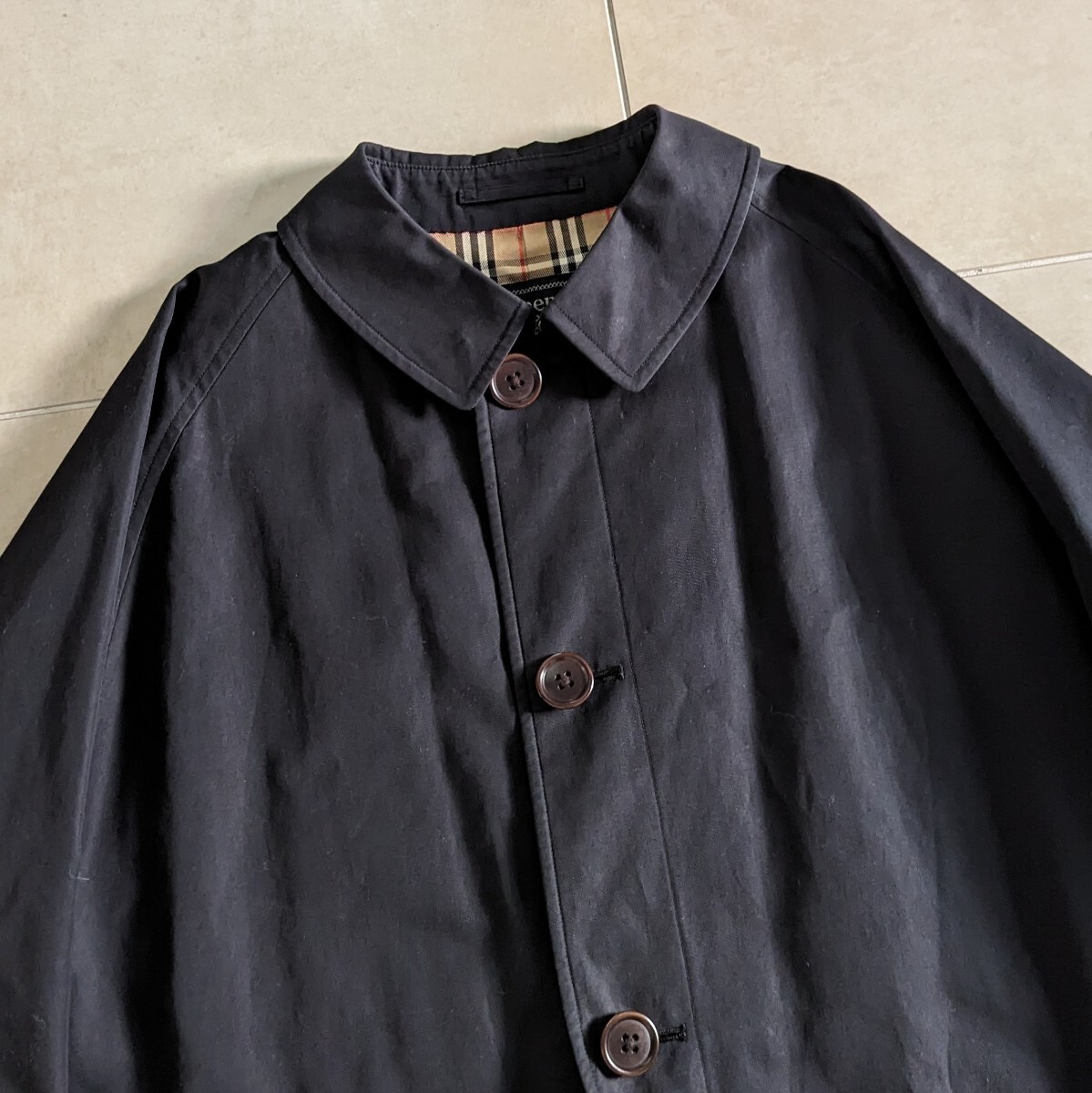 BURBERRY バーバリー 一枚袖 バルカラーコート ブラック ステンカラーコート バルマカーンコート コットン100% 黒 チンストラップ