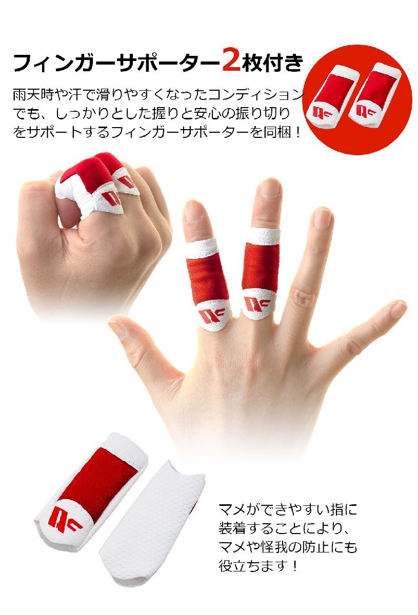 更に、右手の指部分をカバーしてくれるフィンガーサポーターが2枚付いてきます!雨天時や汗で滑りやすいコンディションでも安心して振り切れます。