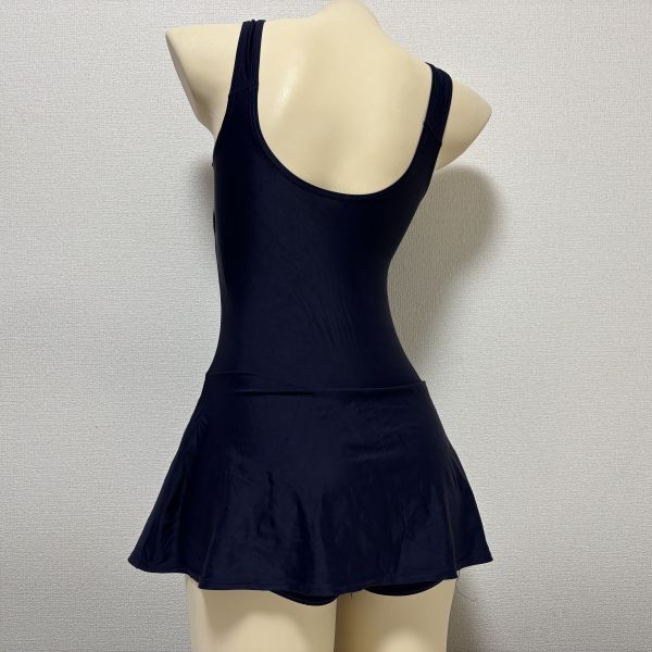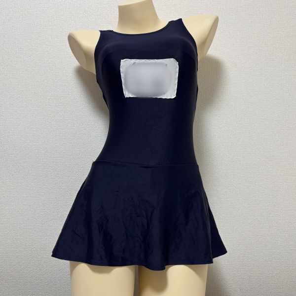16アイルズ女子競泳水着160(Lサイズ程度)★スカートタイプ・光沢濃紺ネイビー★大きいサイズ男性も