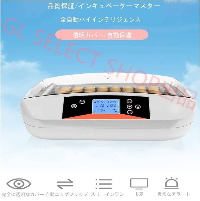 自動孵卵器 56枚 検卵ライト内蔵 大容量 自動転卵 照卵器付き インキュベーター デジタル表示 自動温度制 ふ卵器 実験用 家庭用
