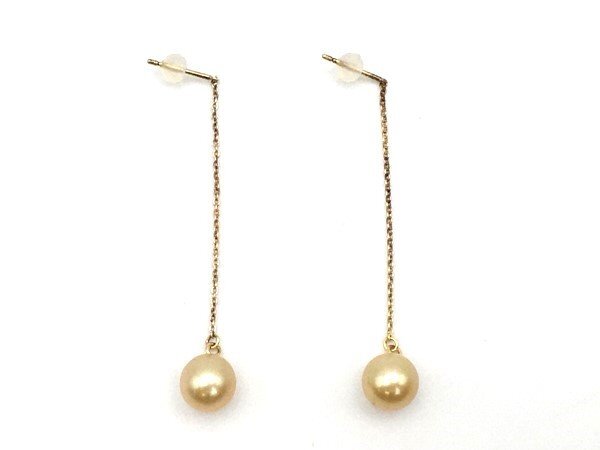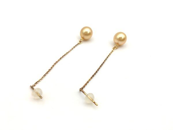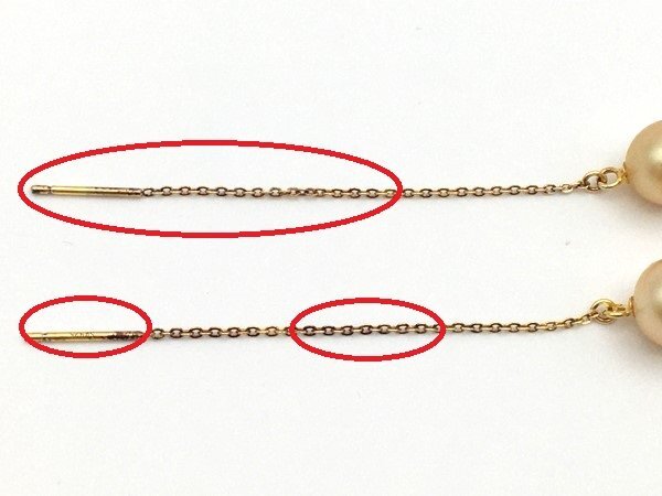ピアス 925 Silver 白蝶真珠 パール アメリカンチェーン 一粒 スイング シリコンキャッチ スタッド/ゴールド/訳有/1円スタート/AY