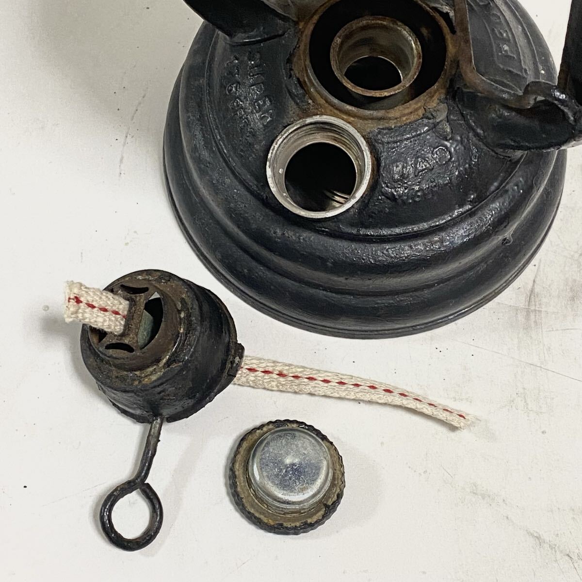 | ご覧いただきありがとうございます。 FEUERHAND フュアーハンド 176STURMKAPPE(STK)DBP 赤ホヤ stkとはsturmkappeの略称で、風防付きのモデルです。 DBPとは特許取得を示しており、この刻印がある製造時期は1950年代後半〜1960年代半ばとされています。 176 stkは状態が良い個体は希少で海外でも高値になっています。『DBP』個体はさらに希少性があります。 目立ったへこみや変形はありません。 塗装のムラ・劣化・キズ・サビ・汚れがあります。 ホヤは割れた部分がありますが、接着修理してあり強度に問題はありません。 ホヤの赤いペイントが部分的に剥げています。 ウィックの上下、バーナー部脱着、燃料キャップの脱着、リフターの上下など可動箇所に問題ありません。タンクの漏れはありません。 本体高さ 約21cm | ||