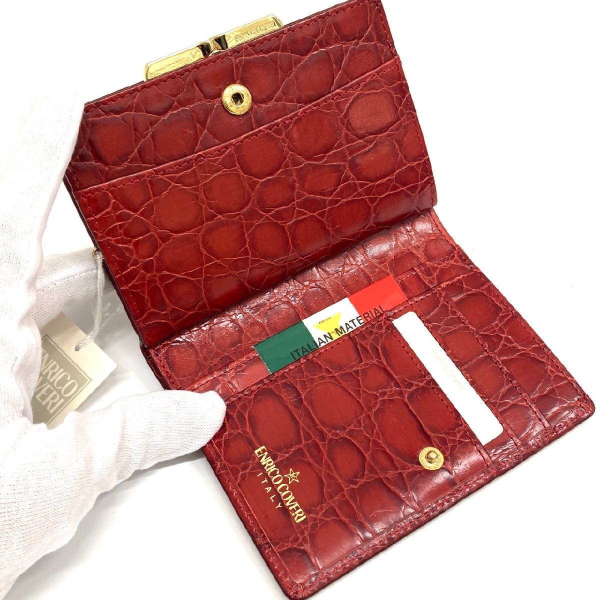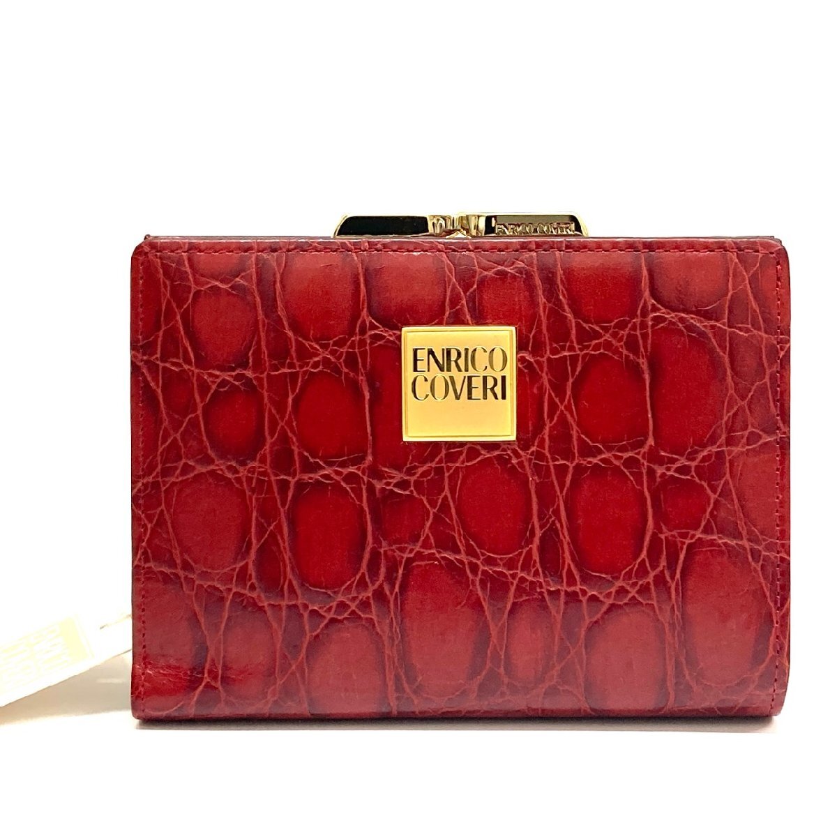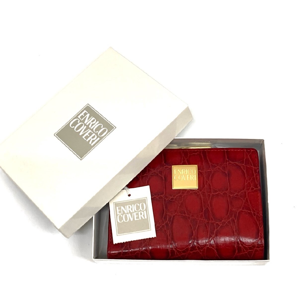 ENRICO COVERI エンリココベリ がま口 二つ折り 財布 レザー 赤系 小銭入れ コインケース 財布