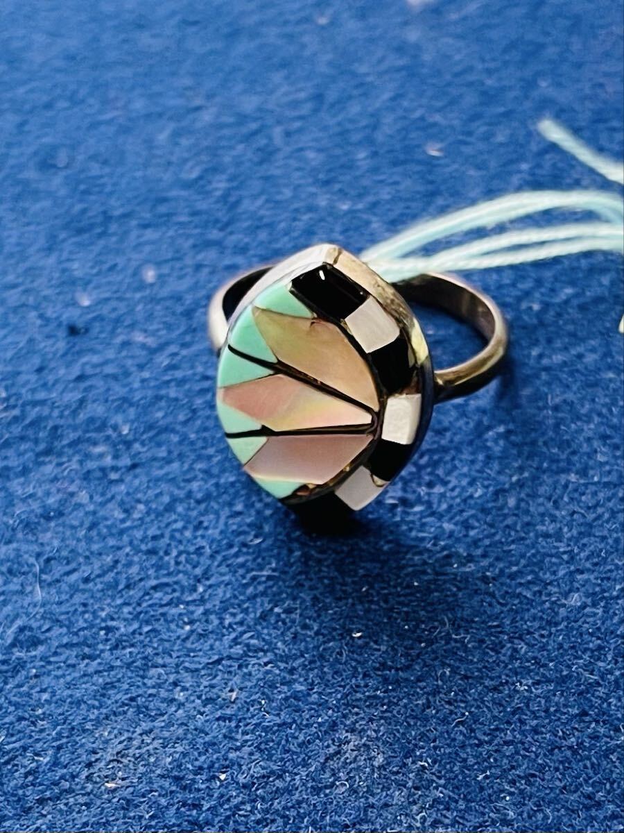 ターコイズとシェルのコンビの他天然石をはめ込んだ