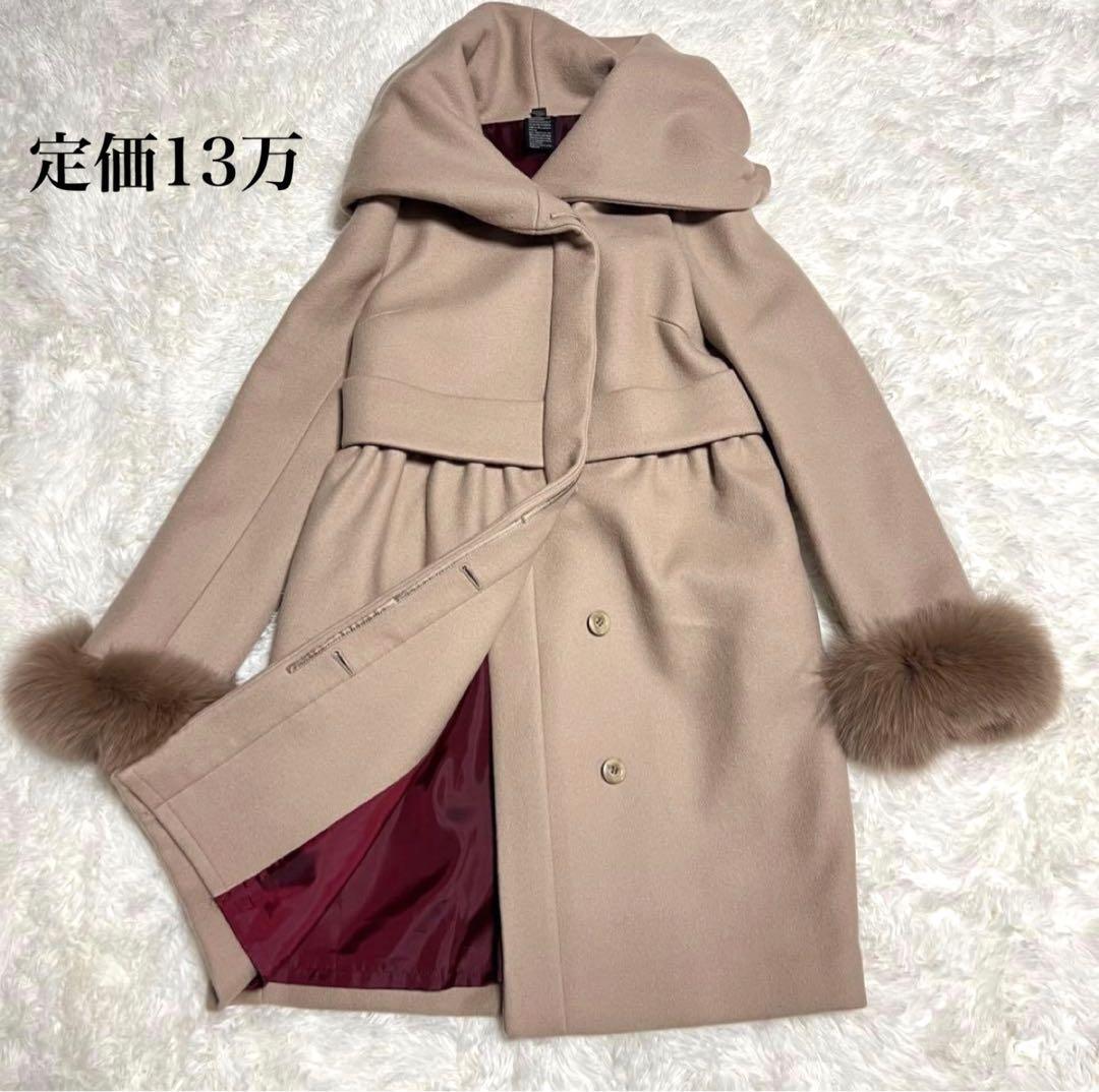 希少 定価13万 バーニーズニューヨーク カシミヤ混 コート フォックスファー 35C03D