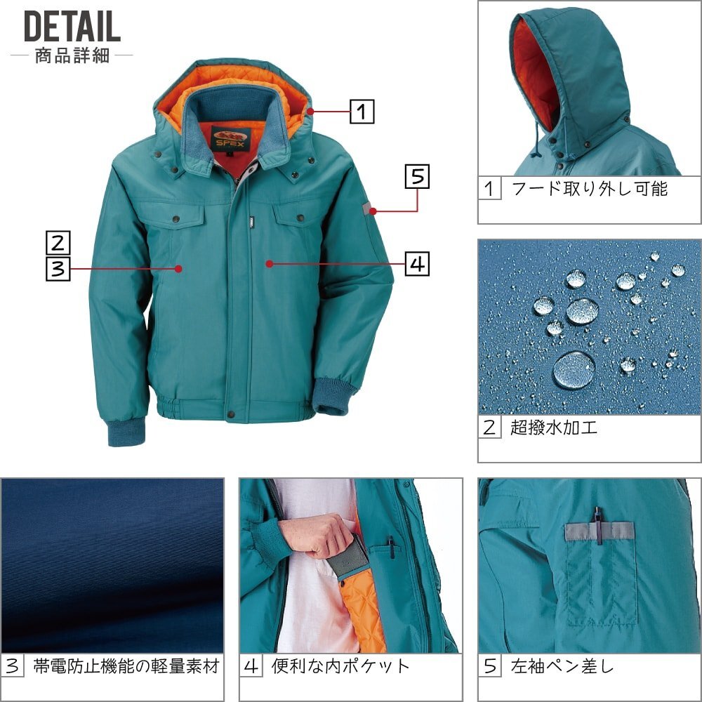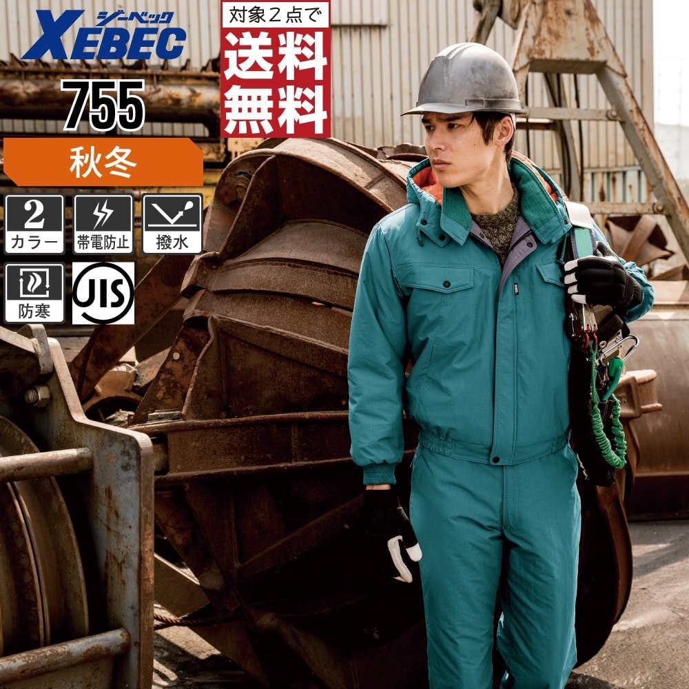 ジーベック 秋冬 中綿 防寒 ブルゾン 撥水加工 脱着式フード JIS規格 帯電防止 755 色:コン サイズ:LL ★ 対象2点 送料無料 ★