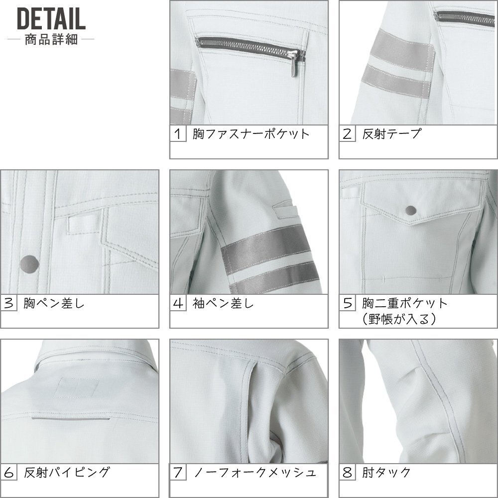 仕様:ペン差し 野帳が入る胸二重ポケット レディース対応 デオドラントテープ 反射テープ ネームループ ひじタック
