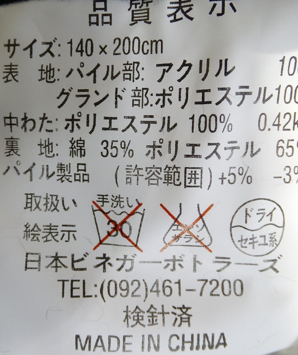 ・サイズ:  ・140㎝×200㎝ ・重さ: 1.4㎏