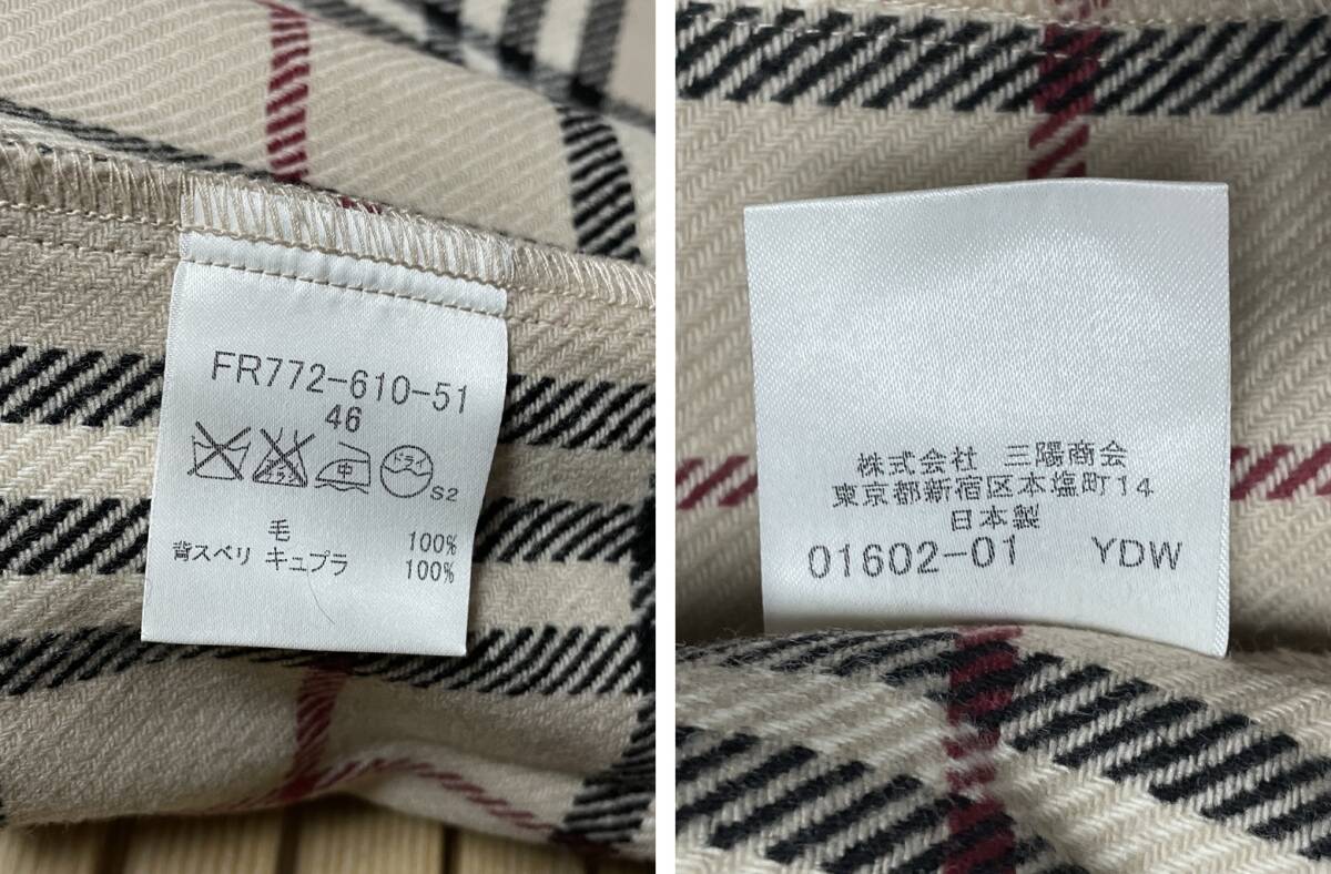 バーバリーロンドン コート用ライナー サイズ46 日本製 ユーズド品
