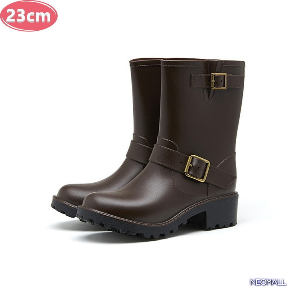 雨対策に☆ レディース お洒落な レインブーツ【495】 23.0cm ブラウン レインシューズ 雨靴 梅雨対策 防滑 防水 雨 雪 晴れ兼用
