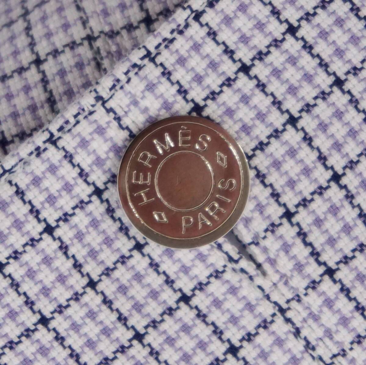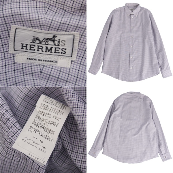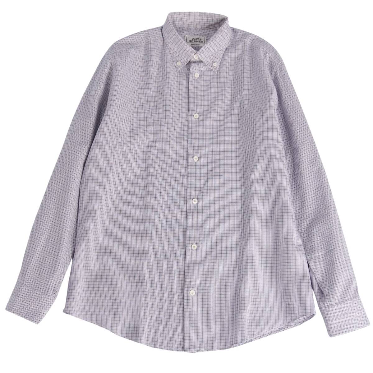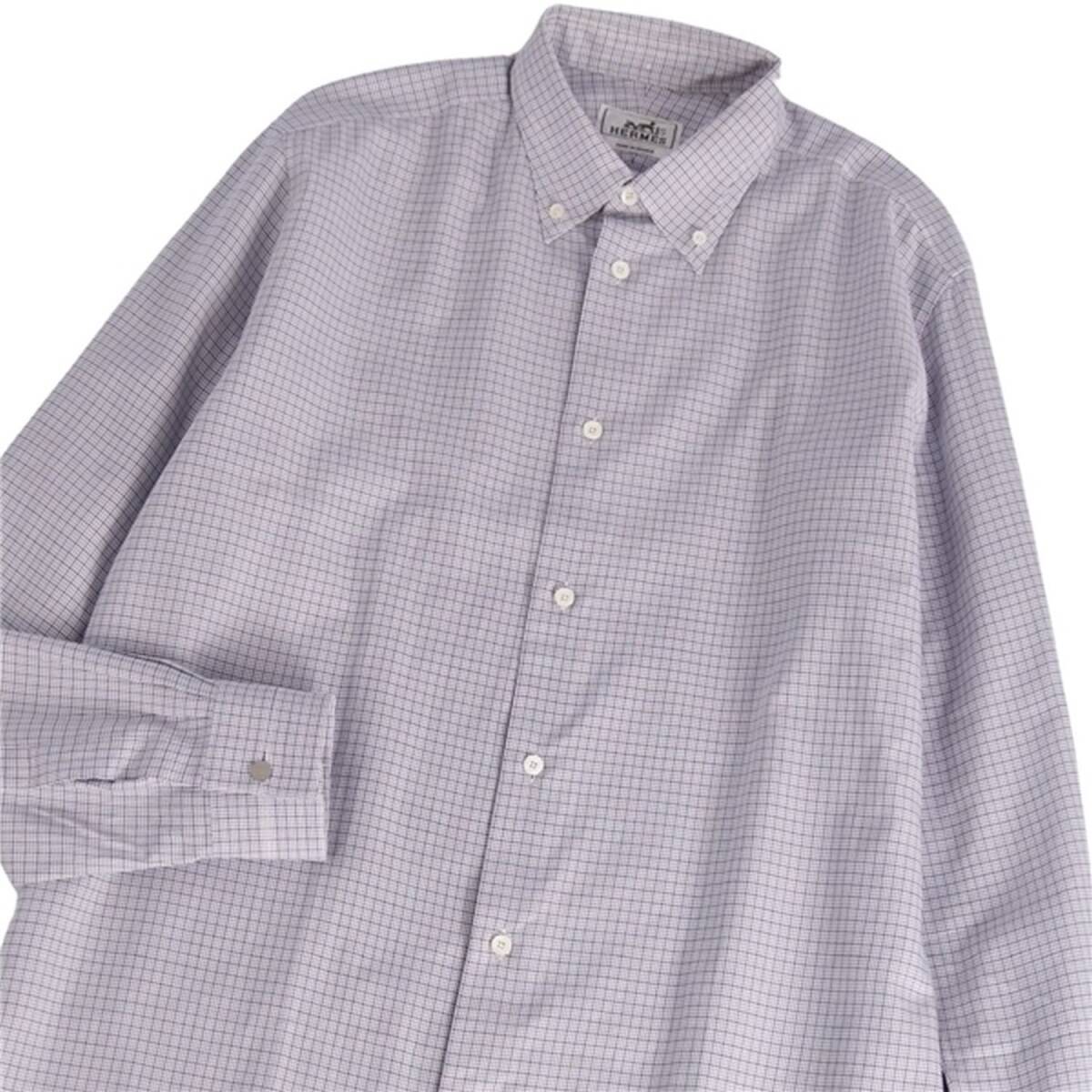 | 美品 エルメス HERMES シャツ ロングスリーブ 長袖 ボタンダウン チェック コットン トップス メンズ 41/16 グレー |