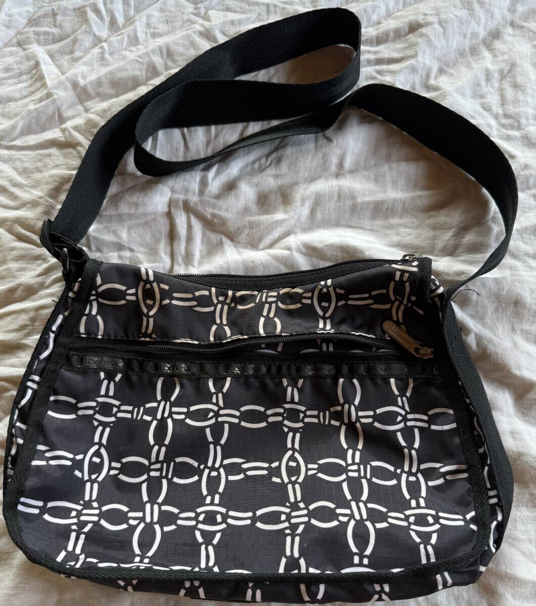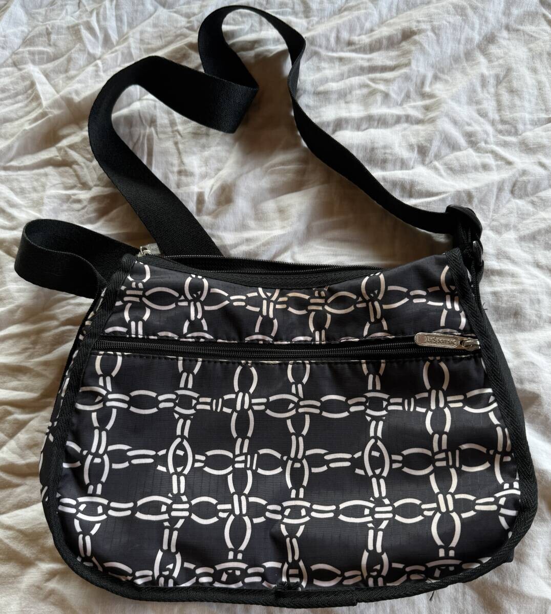 レスポートサック ショルダーバッグ モノクロ 鎖柄 定番