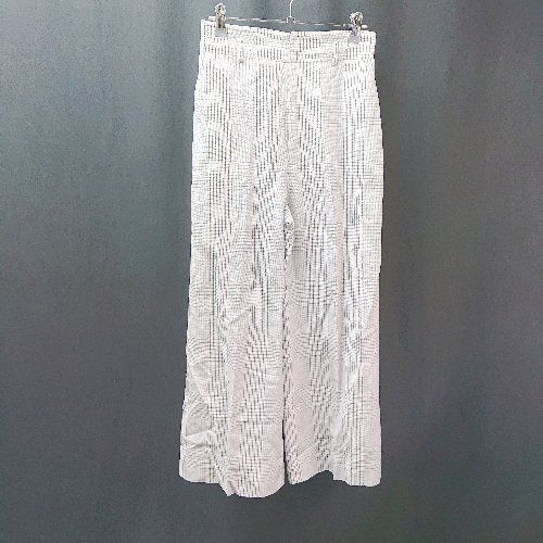 ◇ LAUTREAMONT チェック柄 センターパート ゆったり サラサラ生地 ワイドパンツ サイズ38 グレー系 レディース E