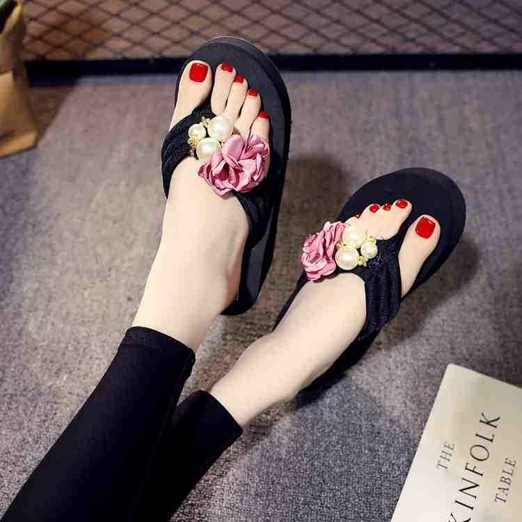 かわいい花柄の飾りが夏にピッタリです、海やプールに出かけた時にオススメ、熱い砂浜やプールサイドなどを歩く時の必需品です。
