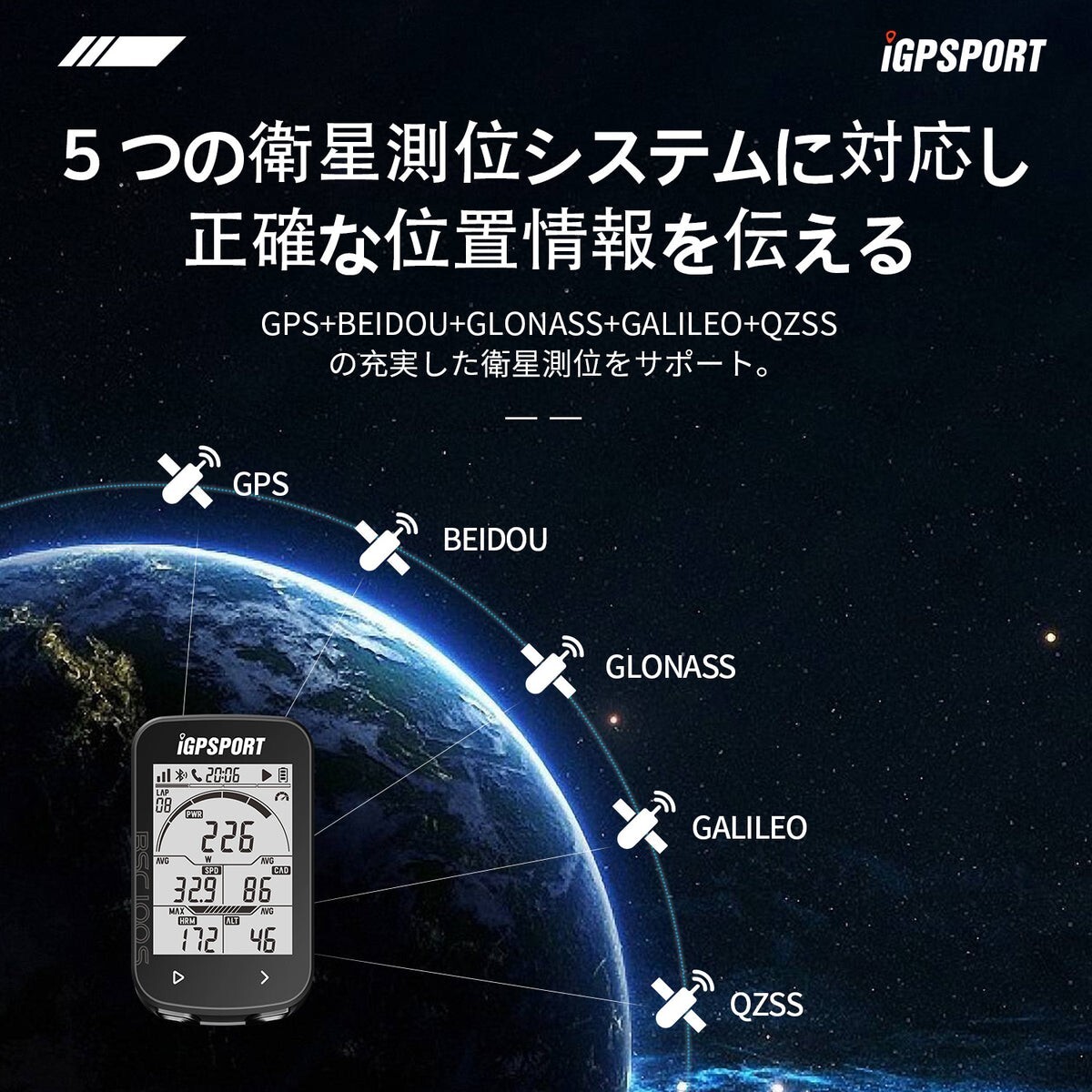 GPS、BEIDOU、GLONASS、GALILEO、QZSSの5つの測位方式に対応し、世界中どこでも正確なGPSデータを提供します。