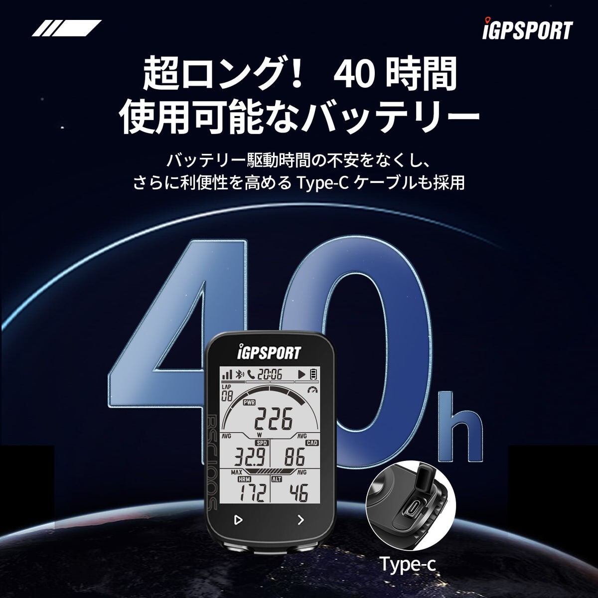 iGPSPORTのサイクルコンピューターは、最大40時間以上の連続使用が可能で、ロングライドにも安心です。
