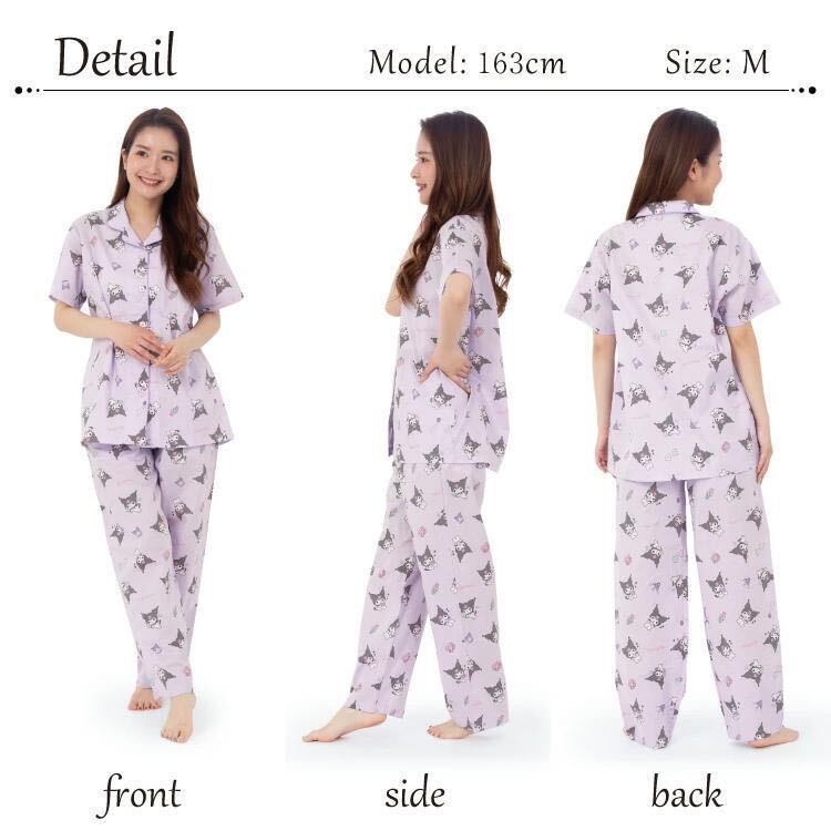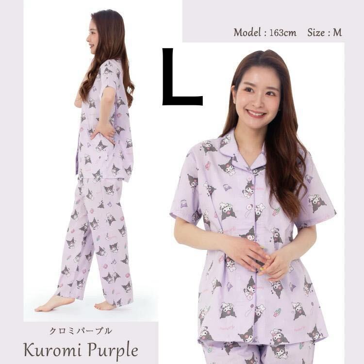 新品63050 Lサイズ パープル クロミ くろみ kuromi シーチング天竺生地シャツ半袖パジャマ 綿100% レディース ルームウェア サンリオ