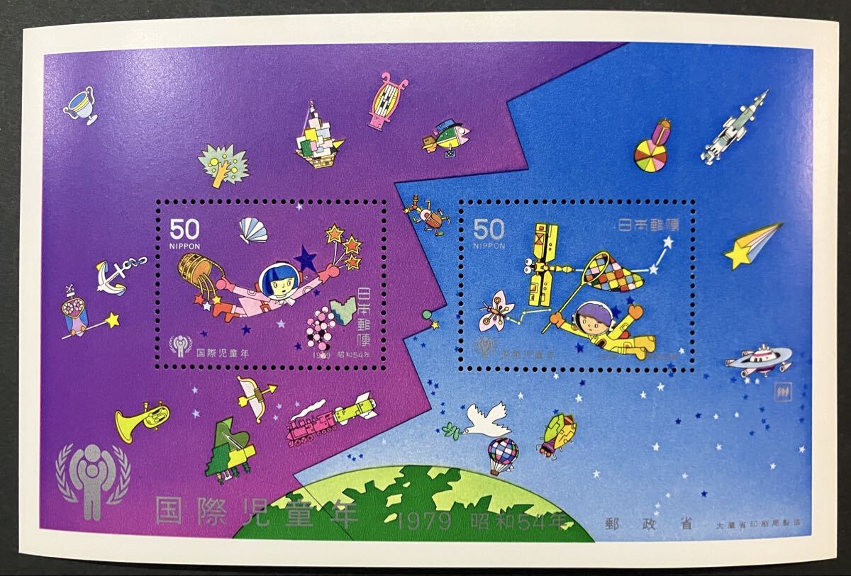 [未使用]国際児童年 小型シート(50円×2枚)