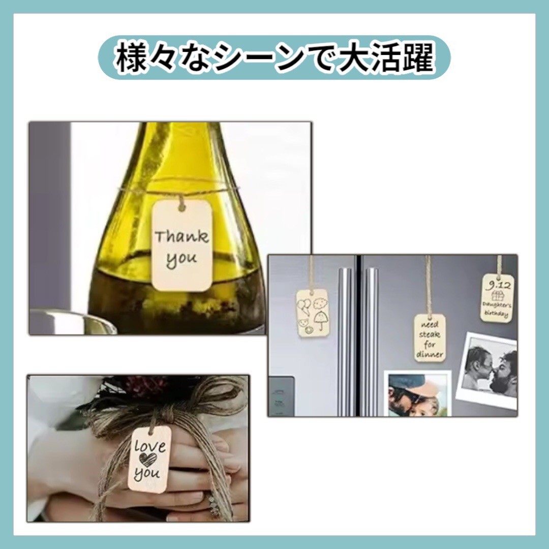 • 【多用途で使える】飲食店やカフェでは、ボトルキープ札やテーブル番号、メニュータグとして活用できます。イベントやパーティーでは、ゲスト名や座席番号を示すネームタグとして便利です。また、学校や幼稚園、保育園では、荷物や着替えに名前を付ける際にも最適で、さまざまなシーンで幅広く役立つアイテムです。