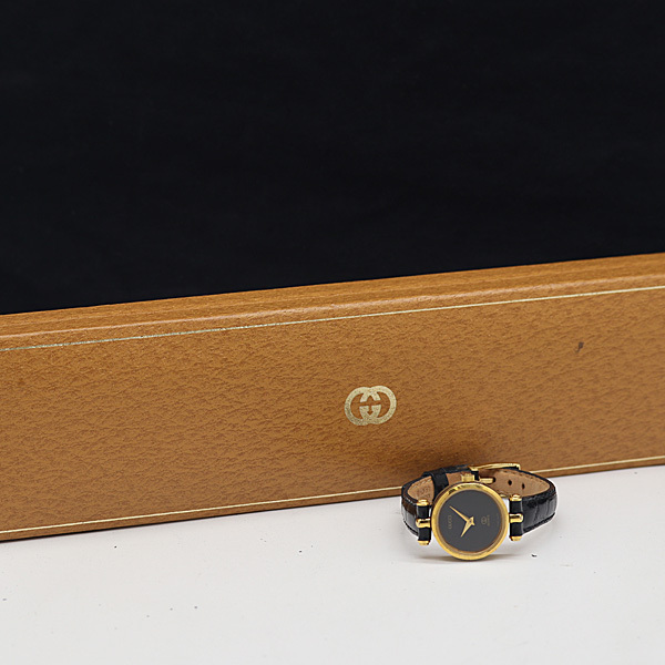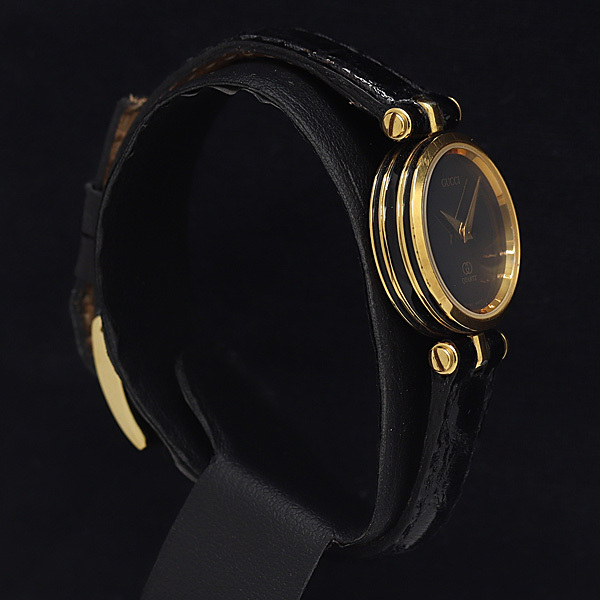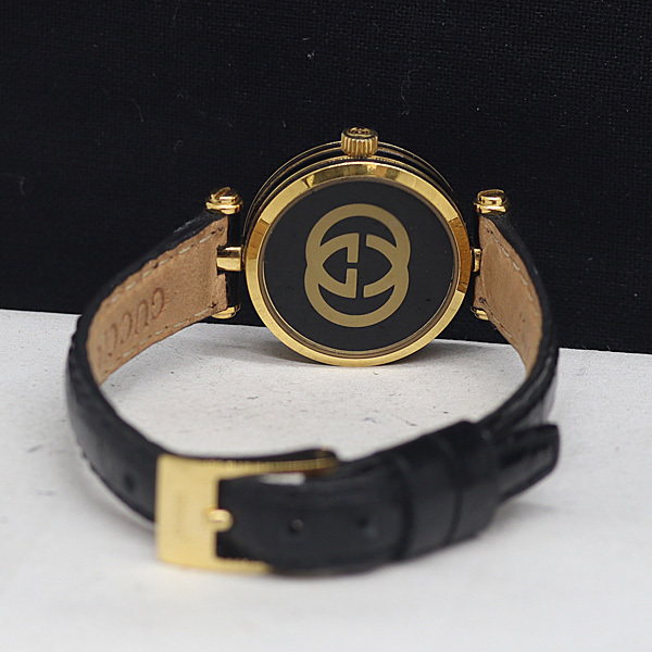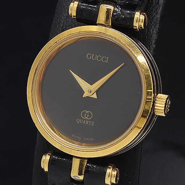 1円 稼働 箱付 グッチ QZ 黒文字盤 ラウンド レディース腕時計 0506000 11ERT IKE
