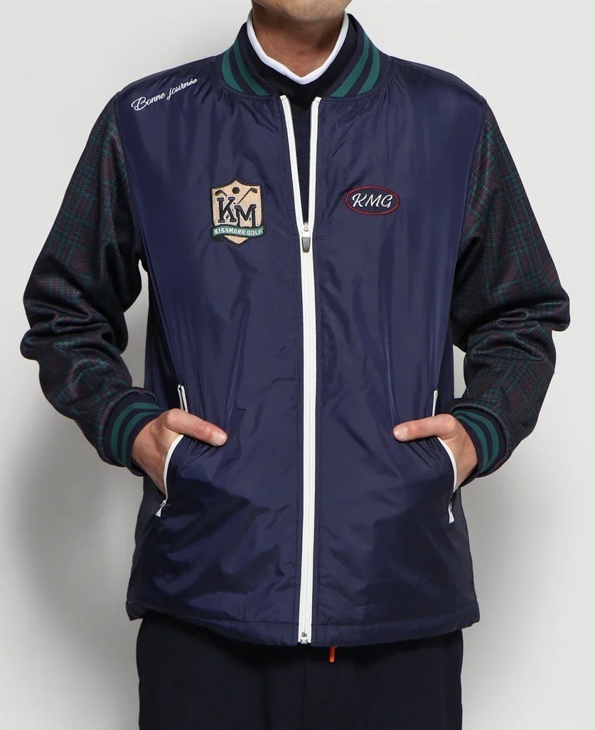 キスマーク kissmark メンズ ゴルフ 中綿ジャケット ネイビー×袖グリーンチェック M 未着用 をお譲りします。