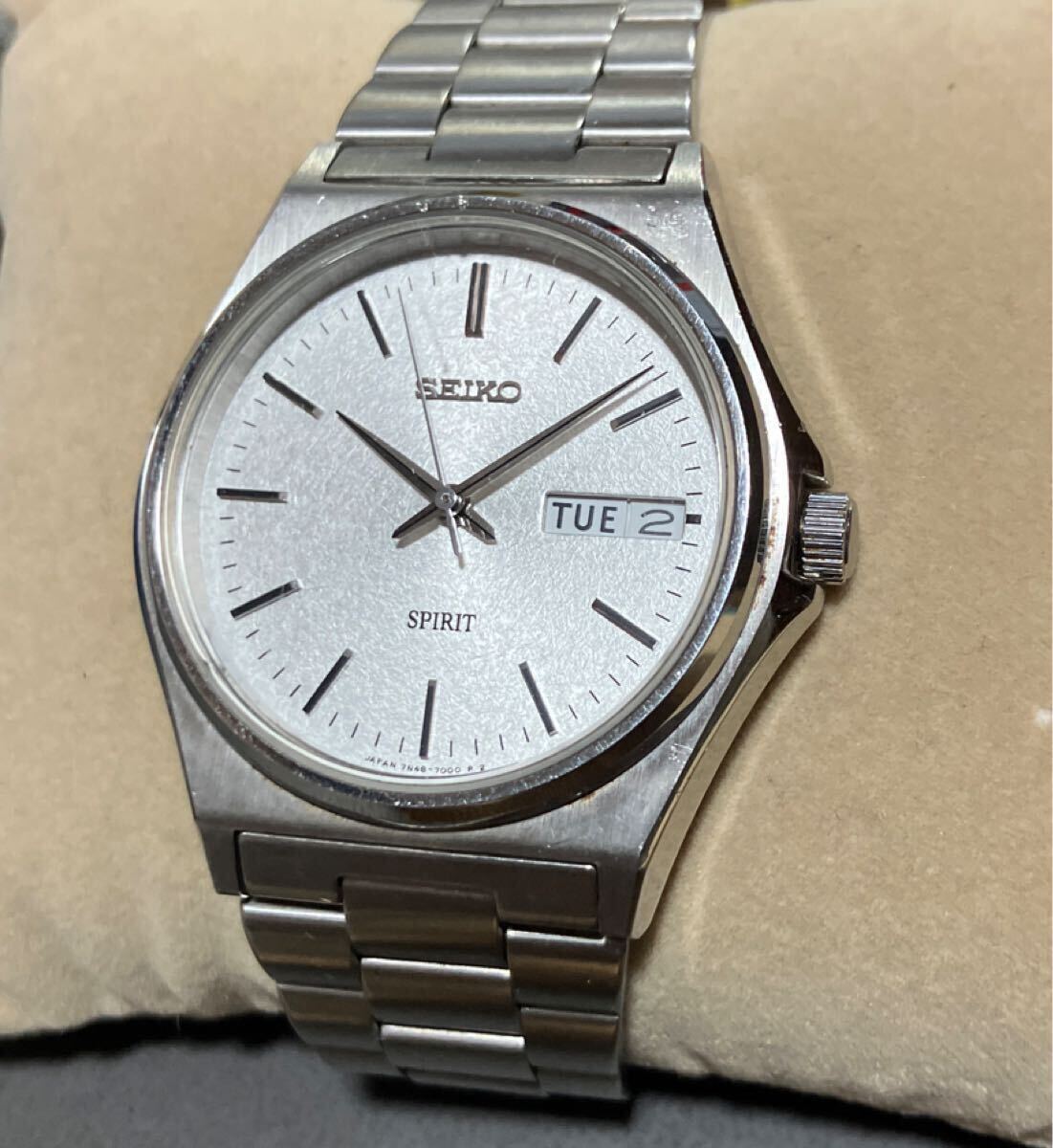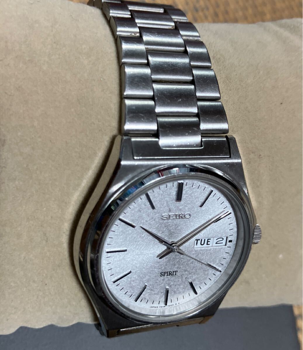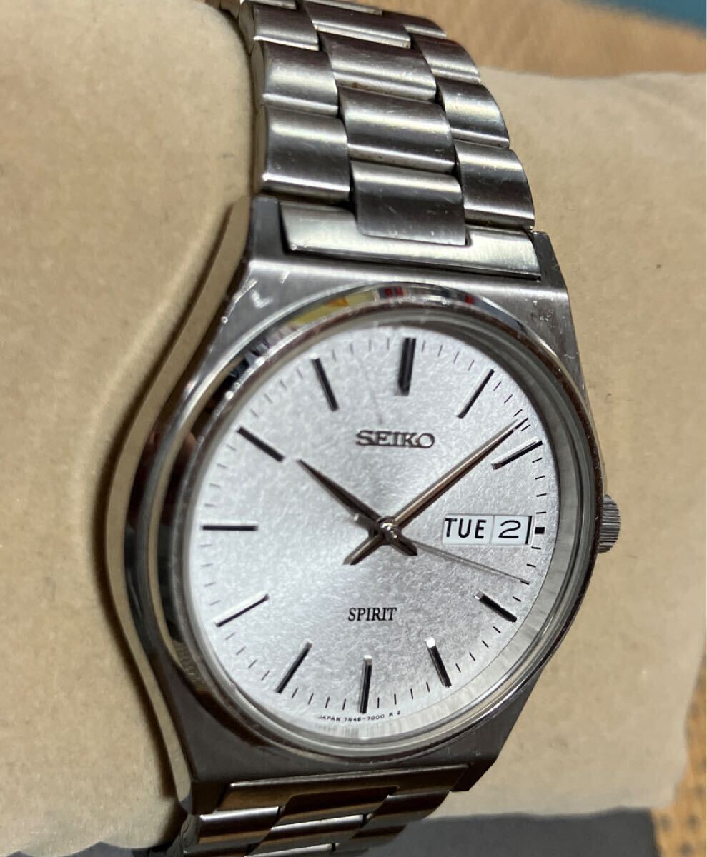 SEIKO SPIRIT セイコー スピリット メンズ腕時計 7N48-7000 デイデイト シルバー文字盤 クォーツ 稼働品
