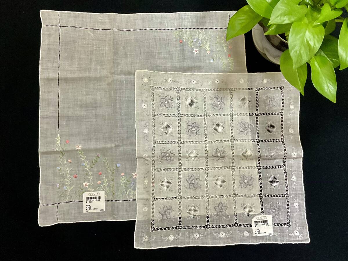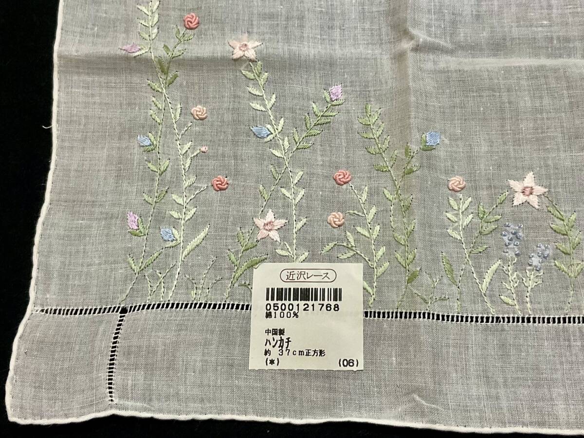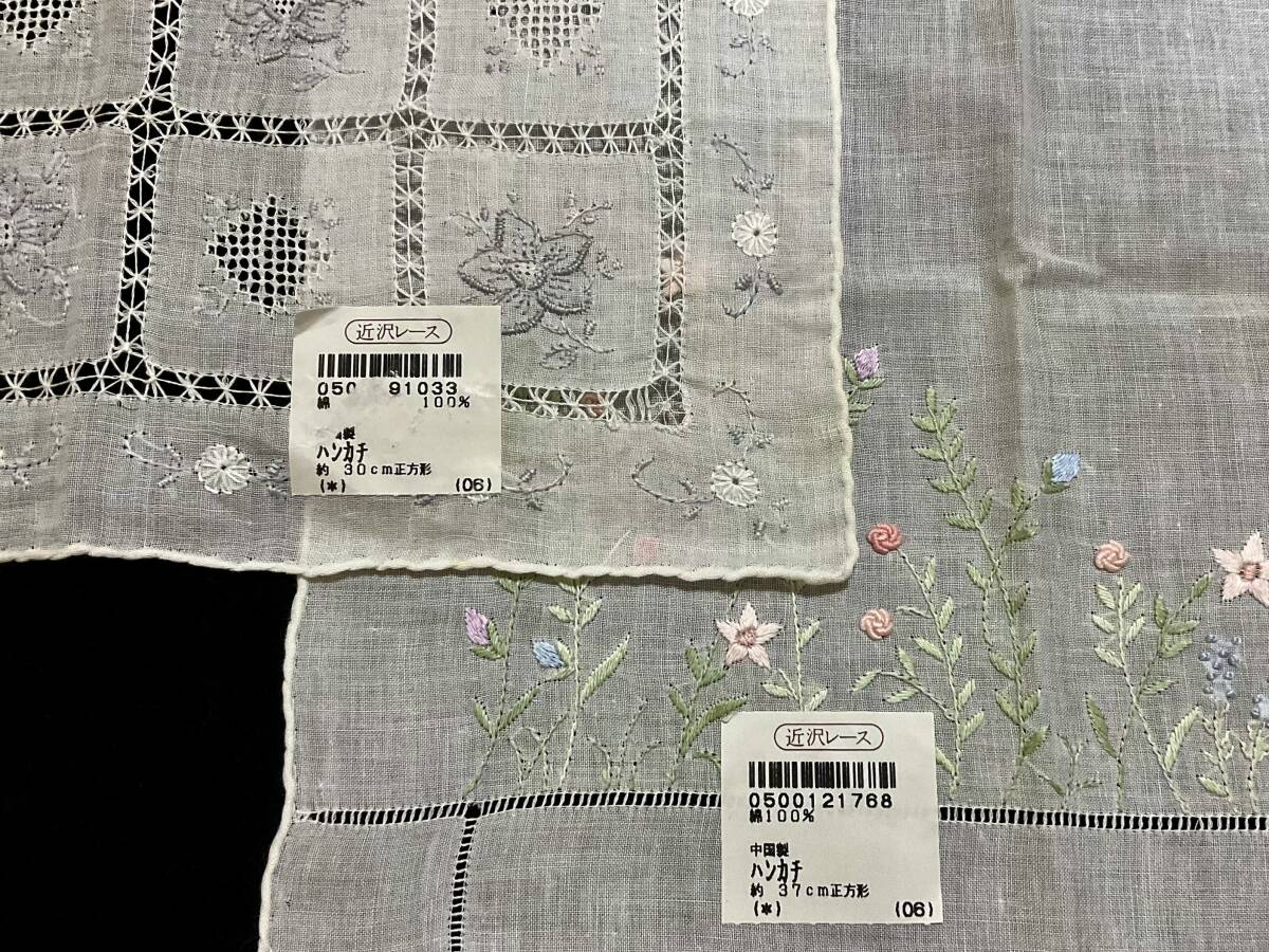 近沢レース ハンカチ 2枚 ステキな刺繍 レース シール付き新品 匿名配達