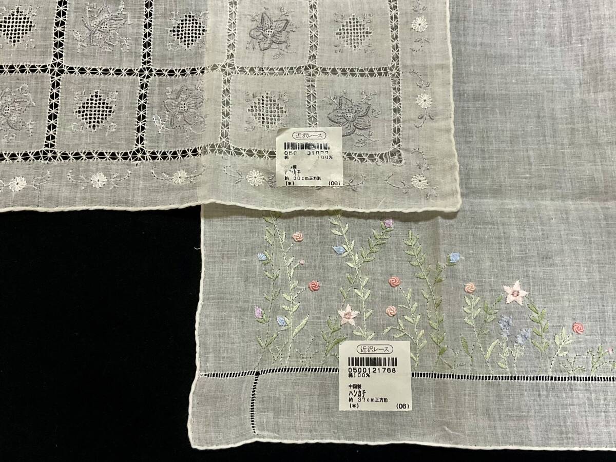 未使用 近沢レース ハンカチ 2枚 ステキな刺繍 レース シール付き新品 匿名配達