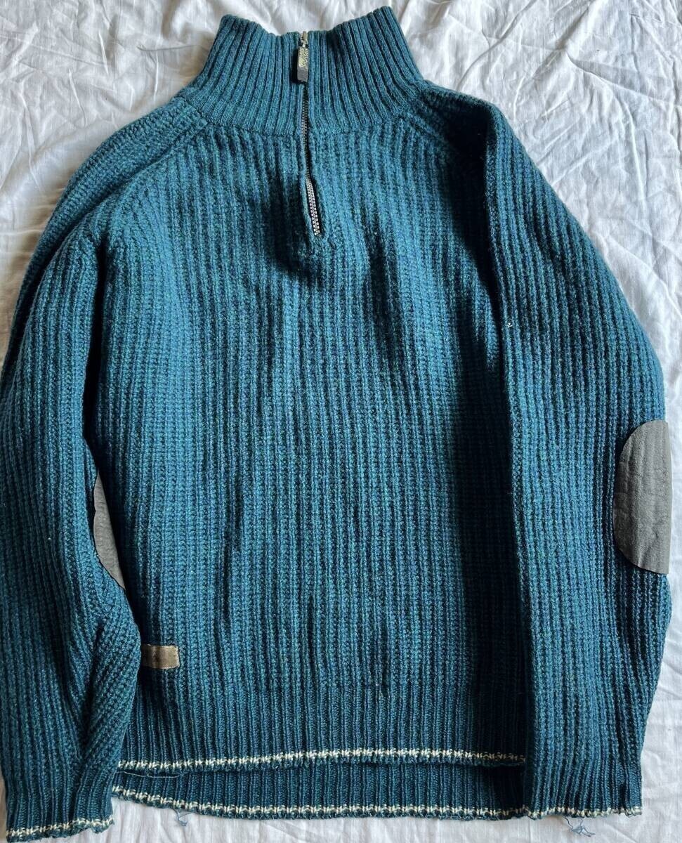 First down ファーストダウン セーター ニット サイズM ブラウン ウール100 厚手  柄物 カラフル 中古