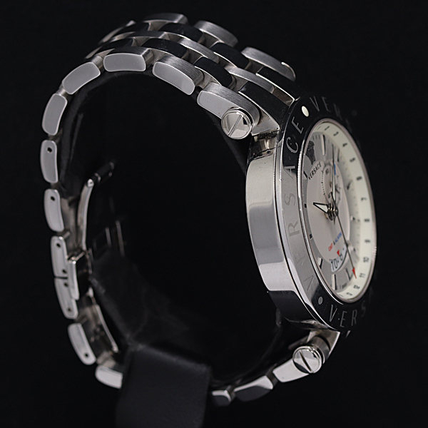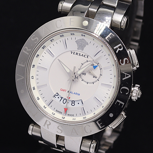 1円 稼働 ヴェルサーチ 29G GMT&アラーム QZ シルバー文字盤 メンズ腕時計 0089100 11JWT MST