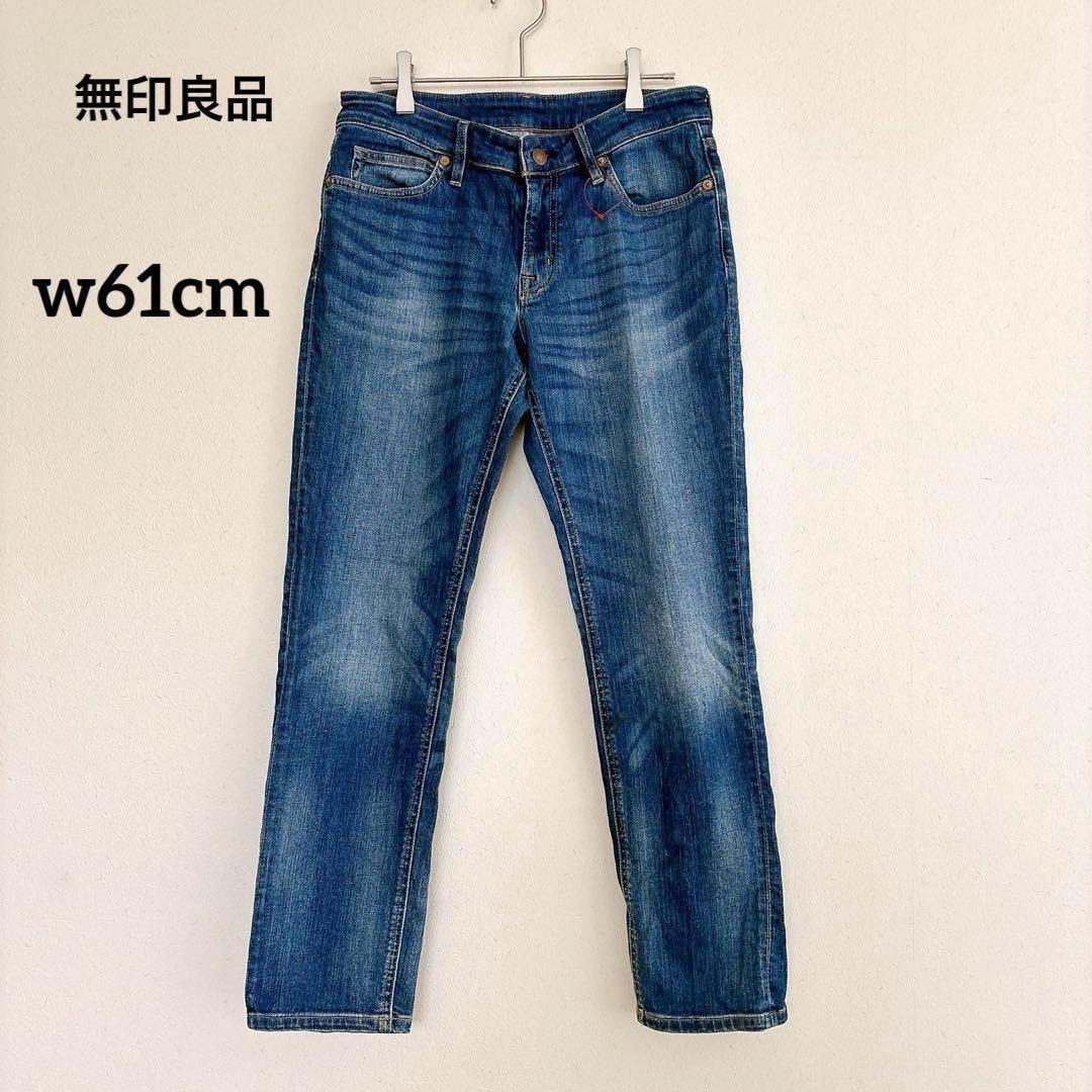 【無印良品 】ストレートデニムパンツ 24インチ W61 ブルー 綿ストレッチ 4FF3A1