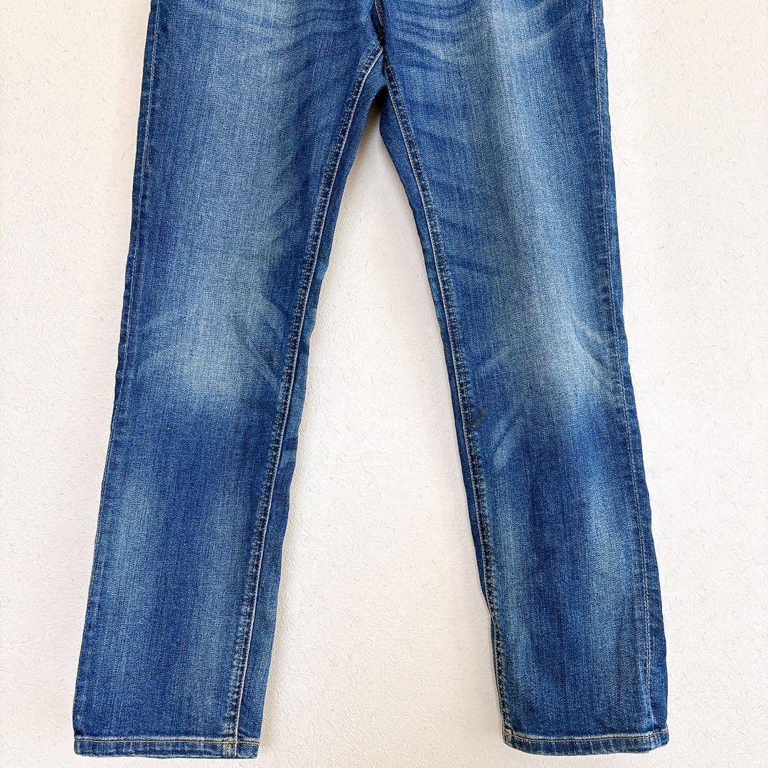 シンプルで飽きのこないデザインと程よいストレッチ感で、普段使いにぴったり。ナチュラルな色落ち加工が施されており、カジュアルコーデに合わせやすいアイテムです。