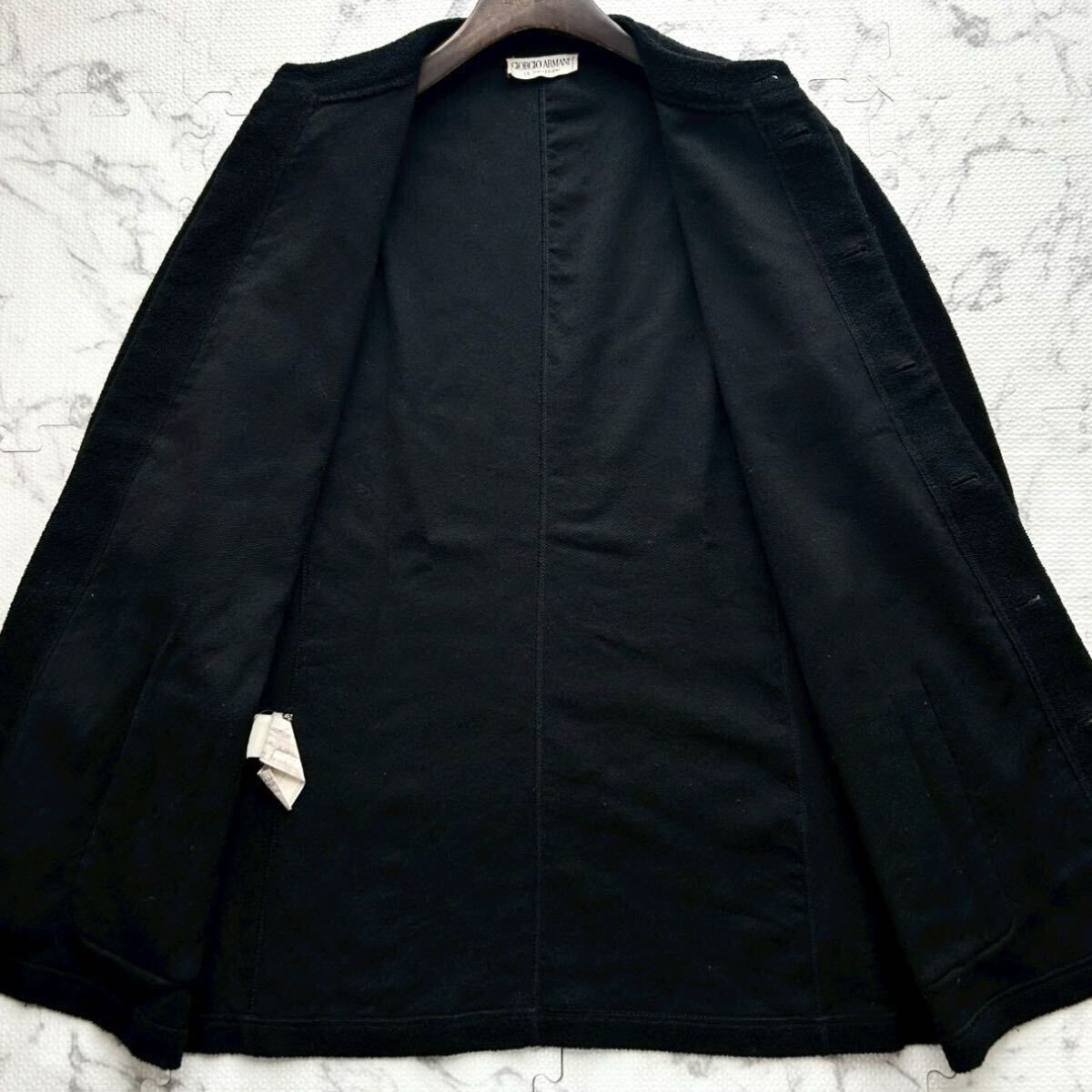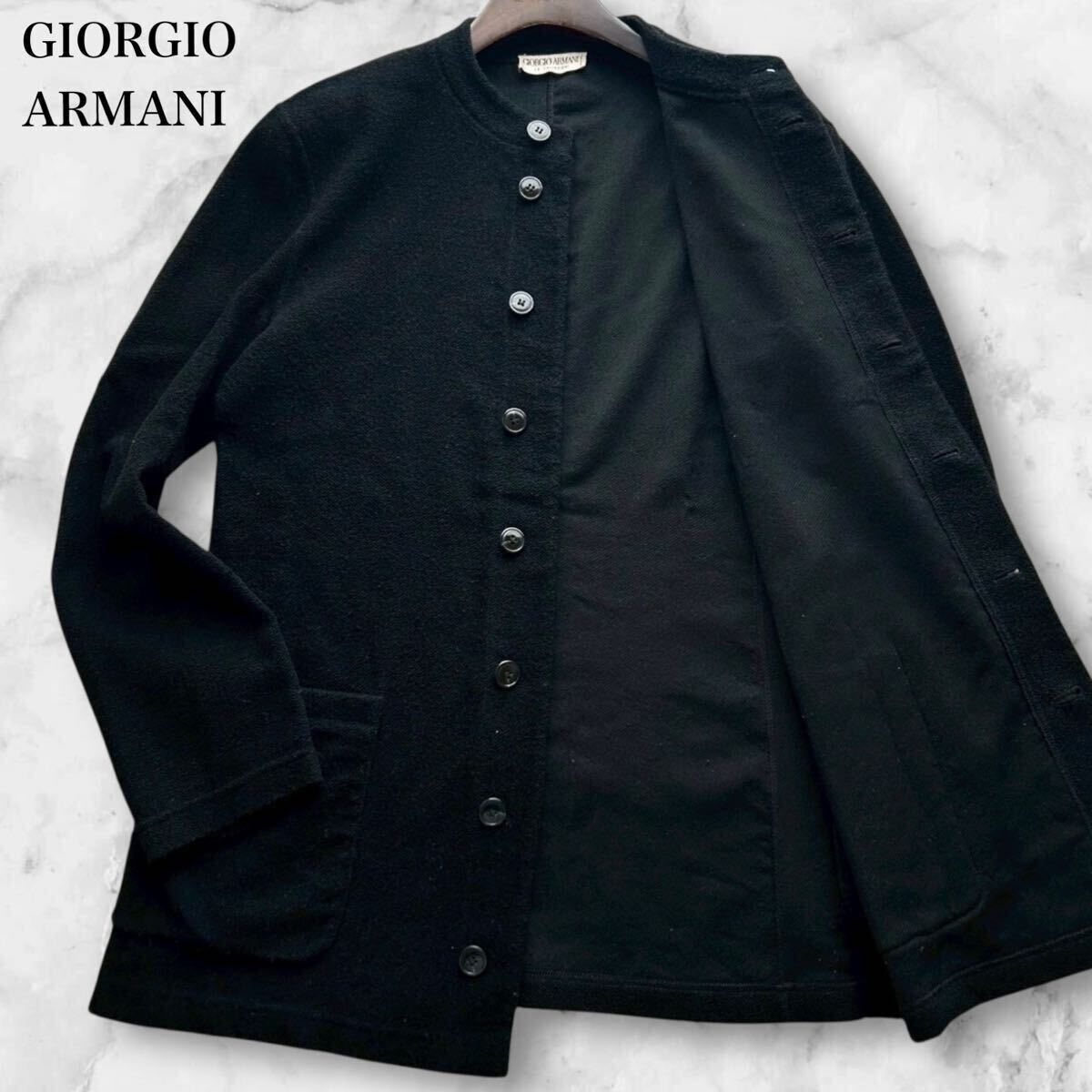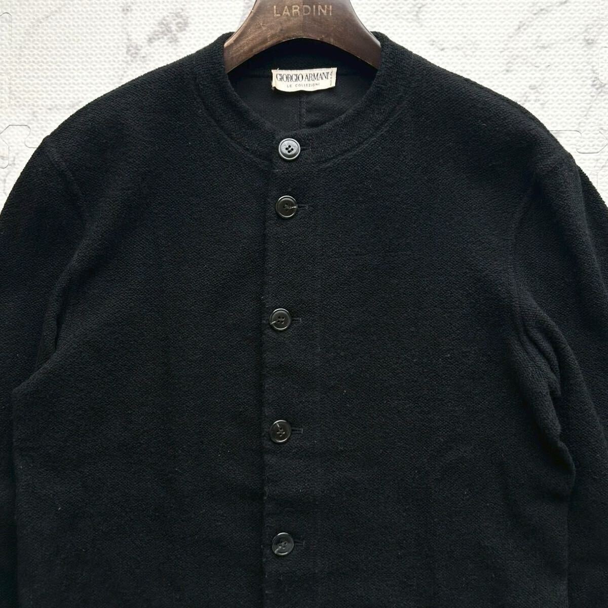 美品/L相当●GIORGIO ARMANI ジョルジオ アルマーニ ノーカラー ジャケット ニット カーディガン ウール ブラック 黒 メンズ イタリア製