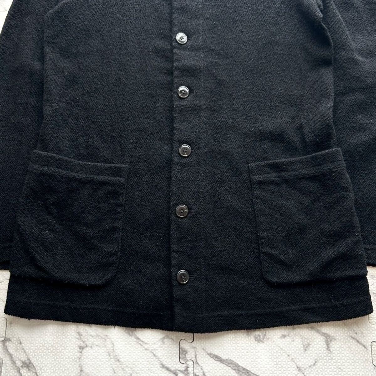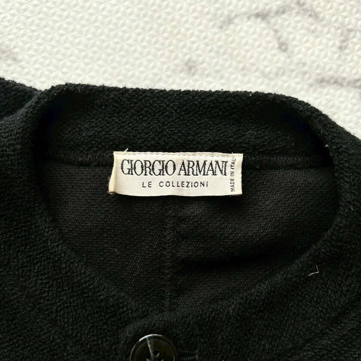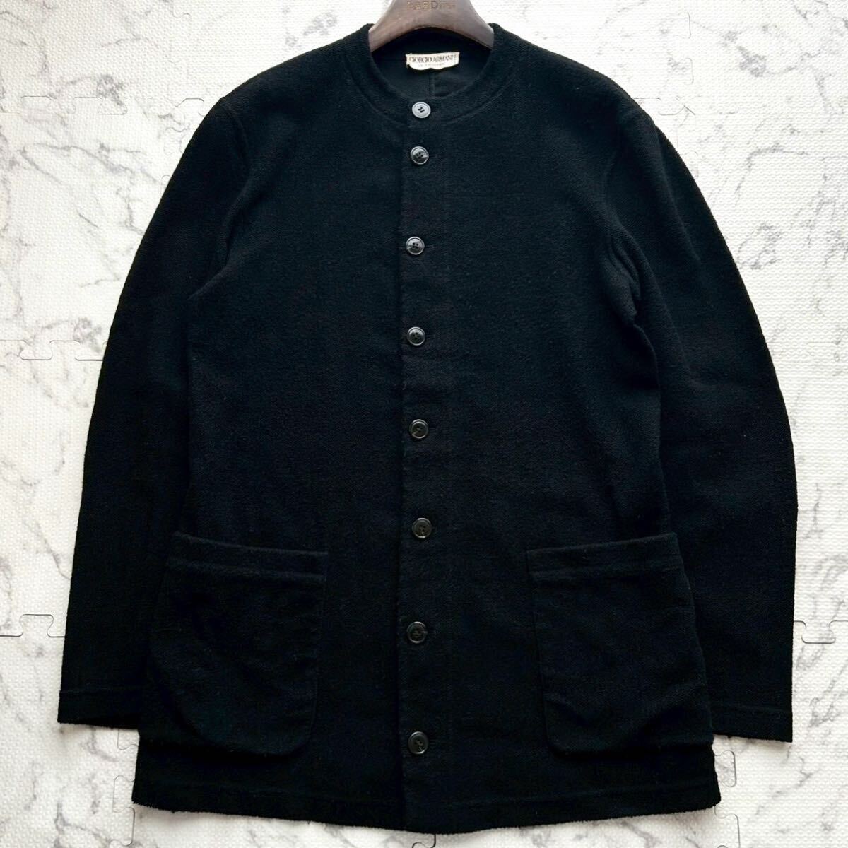 美品/L相当●GIORGIO ARMANI ジョルジオ アルマーニ ノーカラー ジャケット ニット カーディガン ウール ブラック 黒 メンズ イタリア製