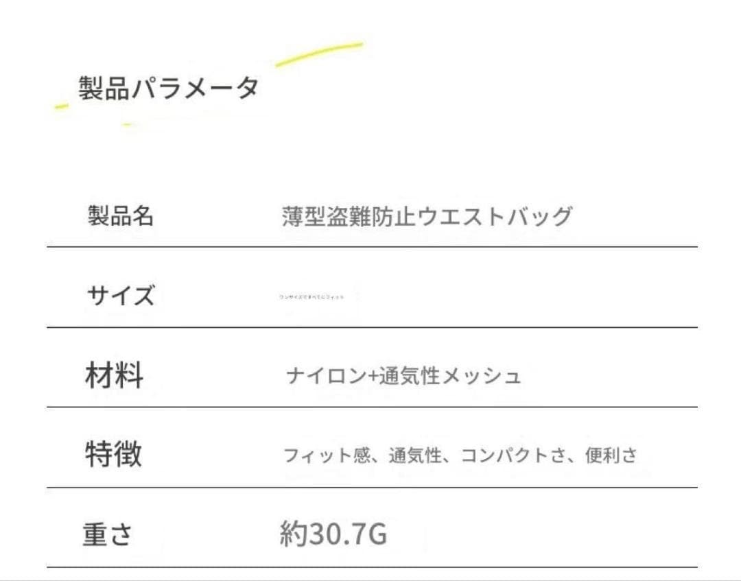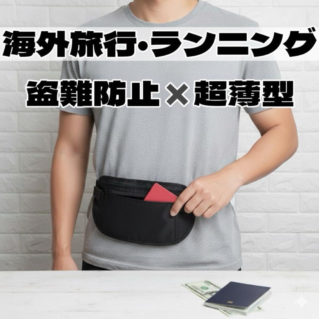 ランニング、旅行やアウトドア、ちょっとしたお出かけに最適な、薄型・軽量のウエストポーチです。服の下に身につけられるので、海外旅行での盗難対策にもぴったり。貴重品を肌身離さず持ち運べて安心です。