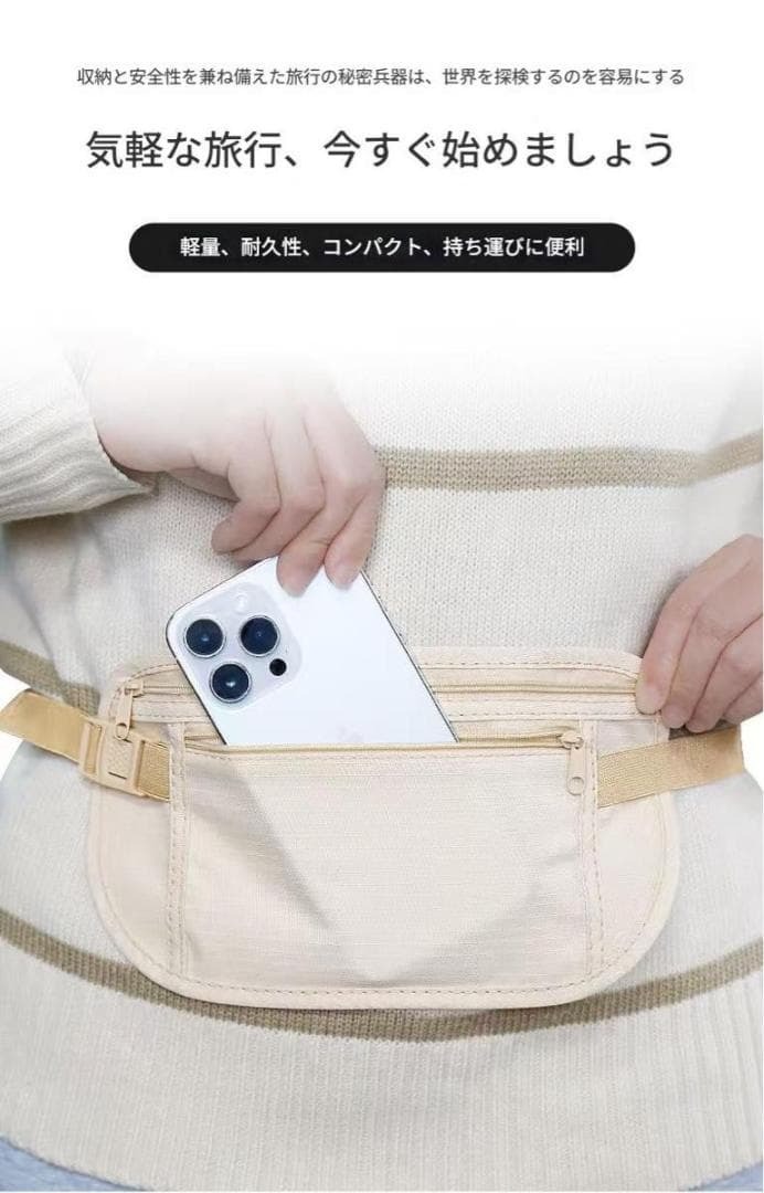 服の下に着用できる薄型設計。パスポートや現金など、見せたくない貴重品をこっそり収納できます。