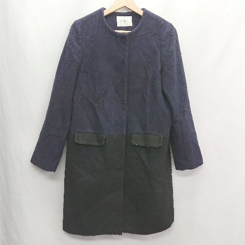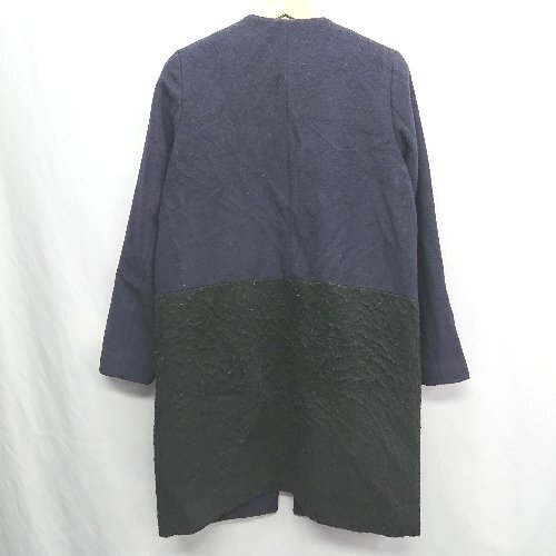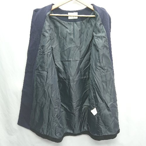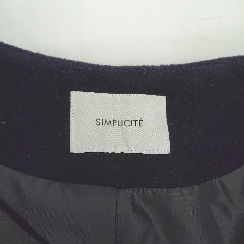 ◇ ⊇ SIMPLICITE 長袖 ノーカラーコート サイズL ネイビー ブラック レディース E