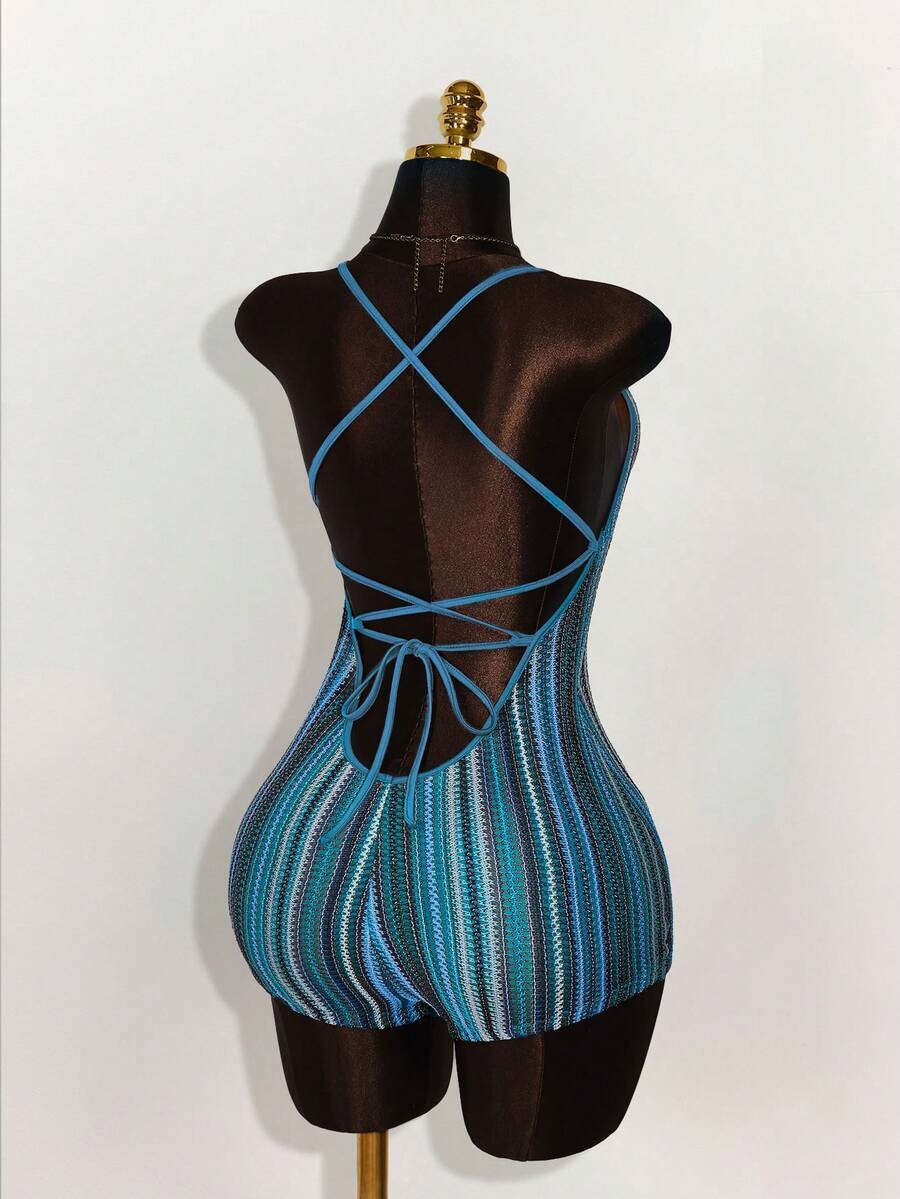 | 商品名 | ボディスーツ 三角カップ テクスチャー入り ボヘミアン バケーションスタイル オープンバック クロスストラップ付きロンパース ユニ |