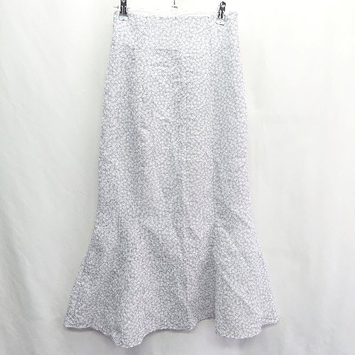 ◇ flower 花柄 ロング丈 マーメイド スカート サイズF ライトブルー ホワイト レディース E