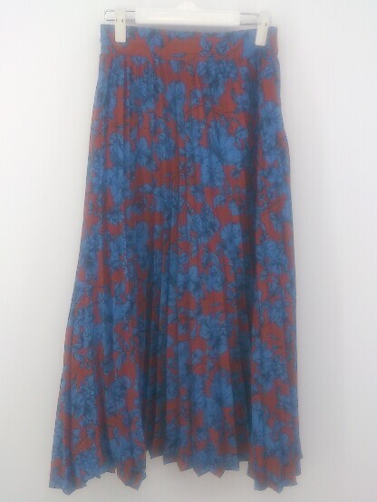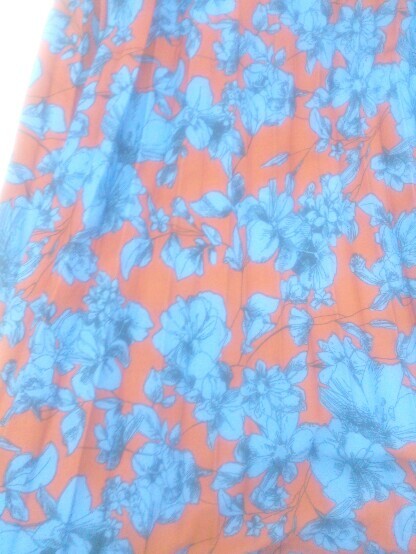 ◇ titivate ティティベイト 花柄 バックウエストゴム ロング プリーツ スカート サイズL オレンジ ブルー系 レディース P