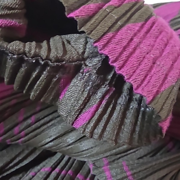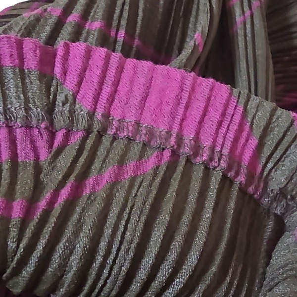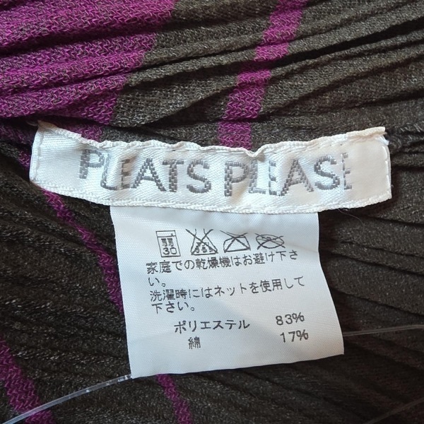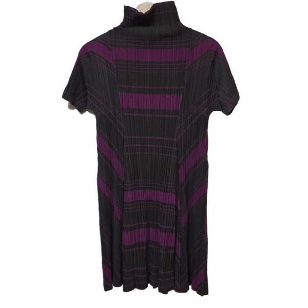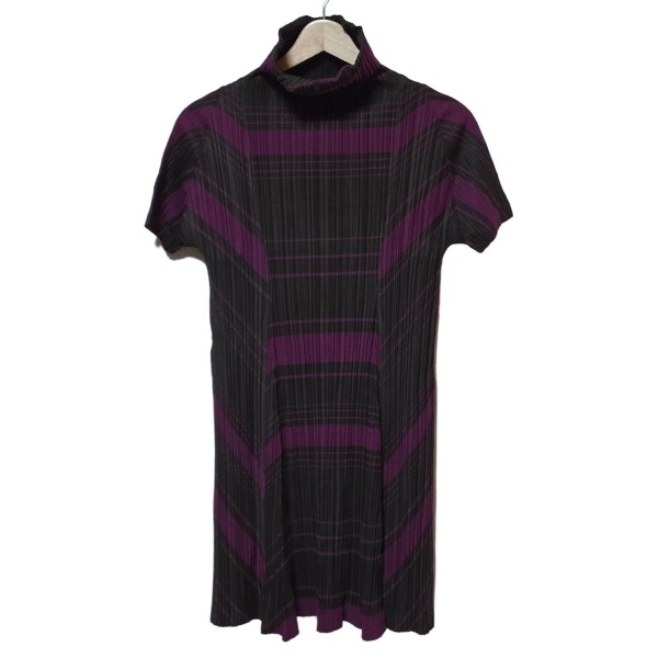 プリーツプリーズ PLEATS PLEASE サイズ3 L - ダークブラウン×ライトパープル レディース タートルネック/半袖/ひざ丈/プリーツ 美品