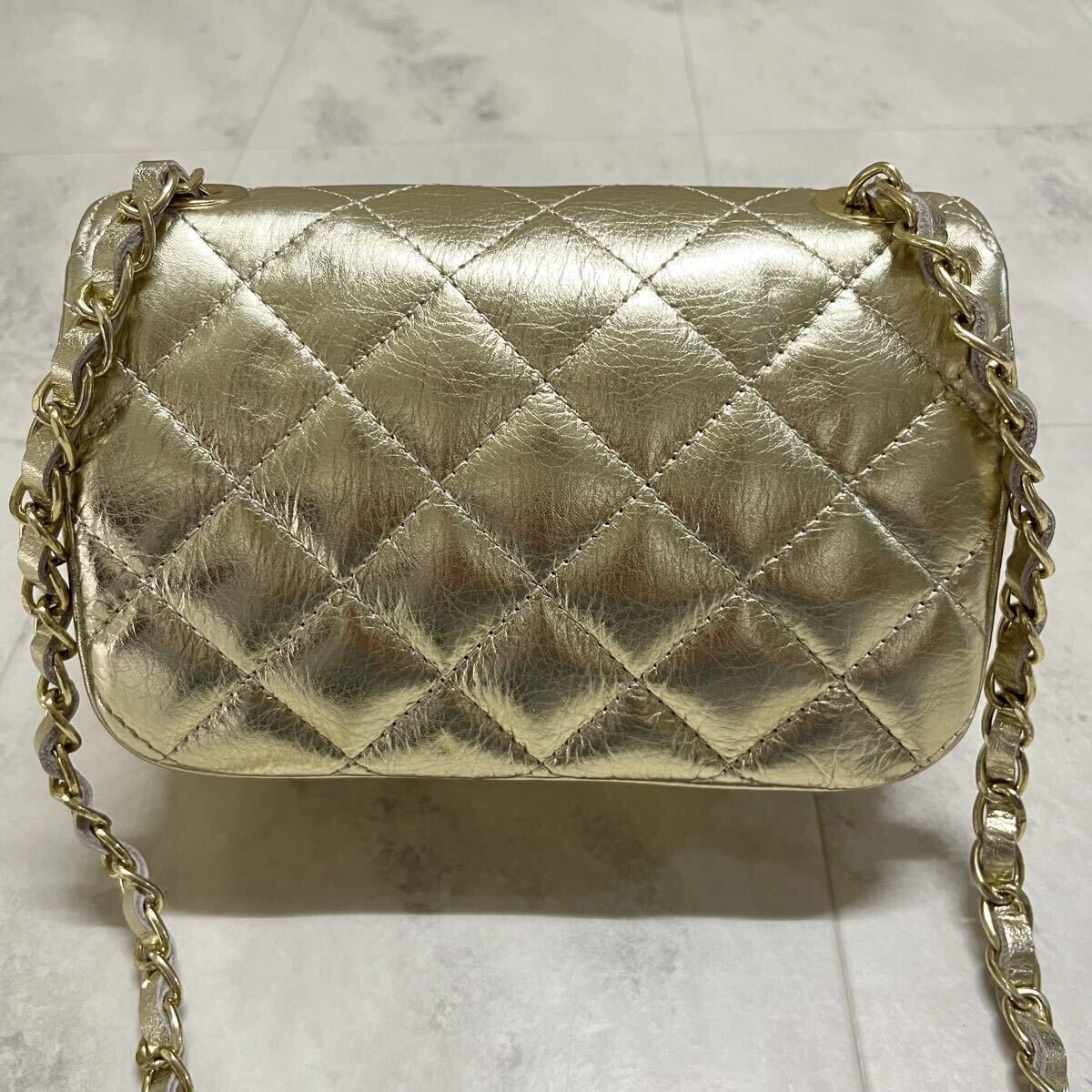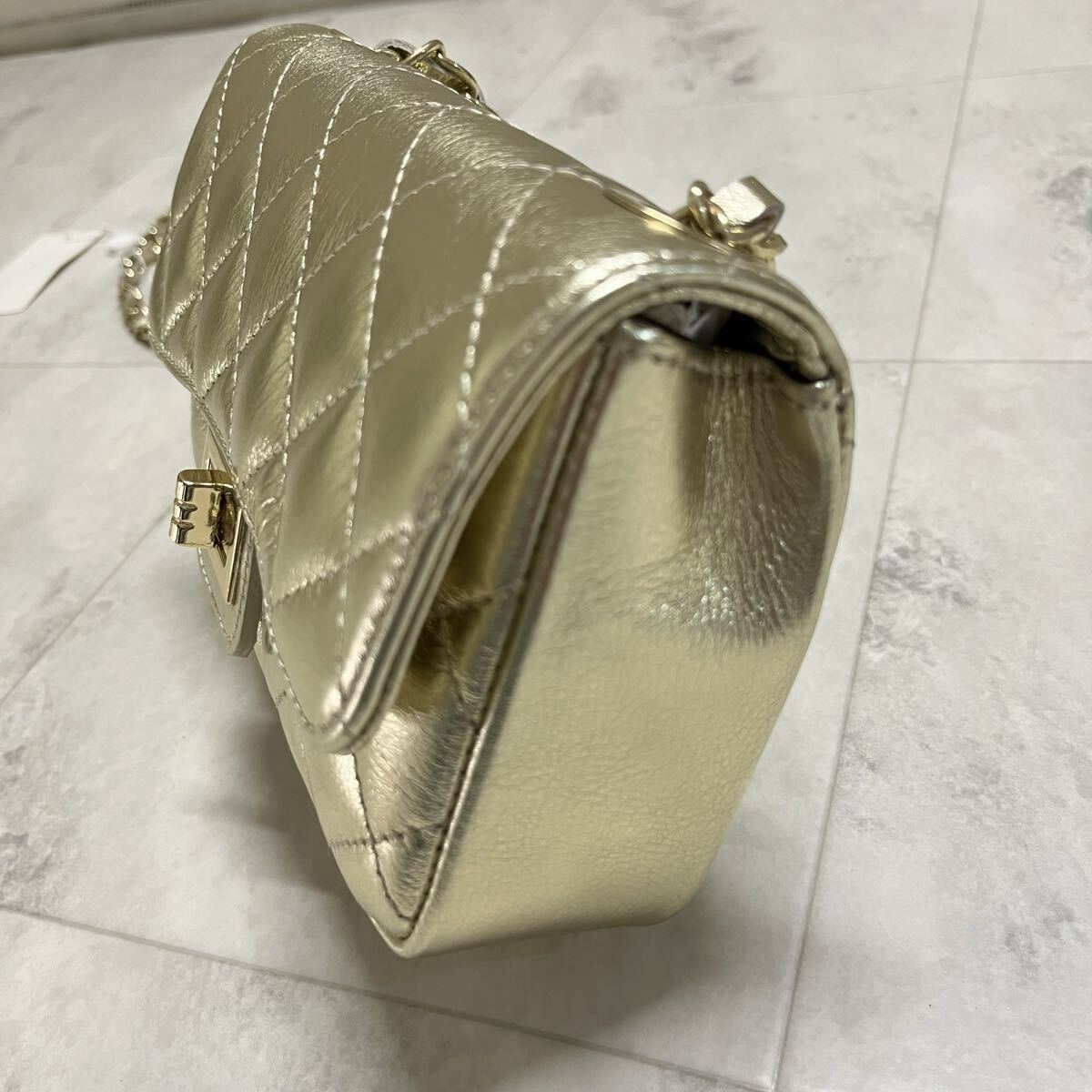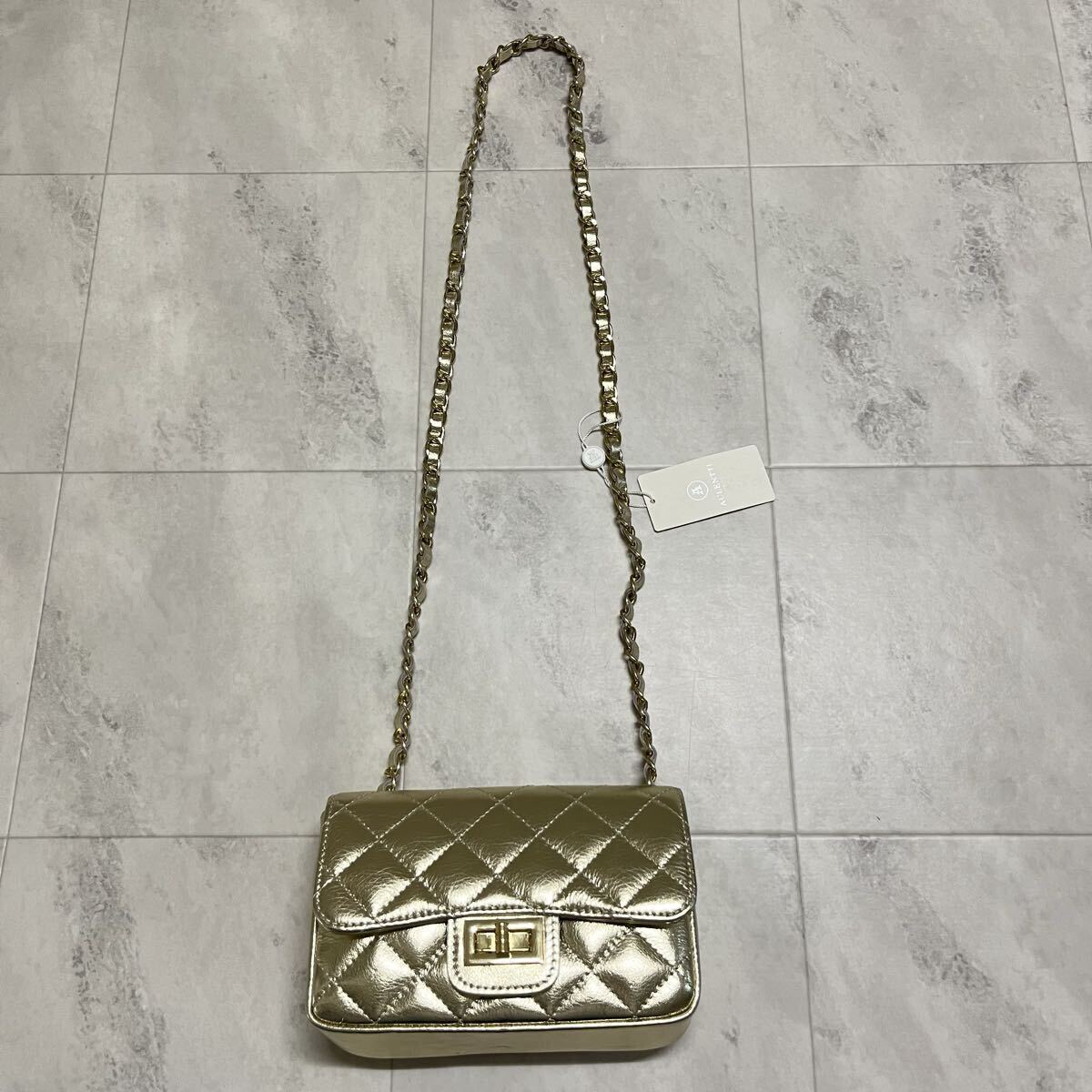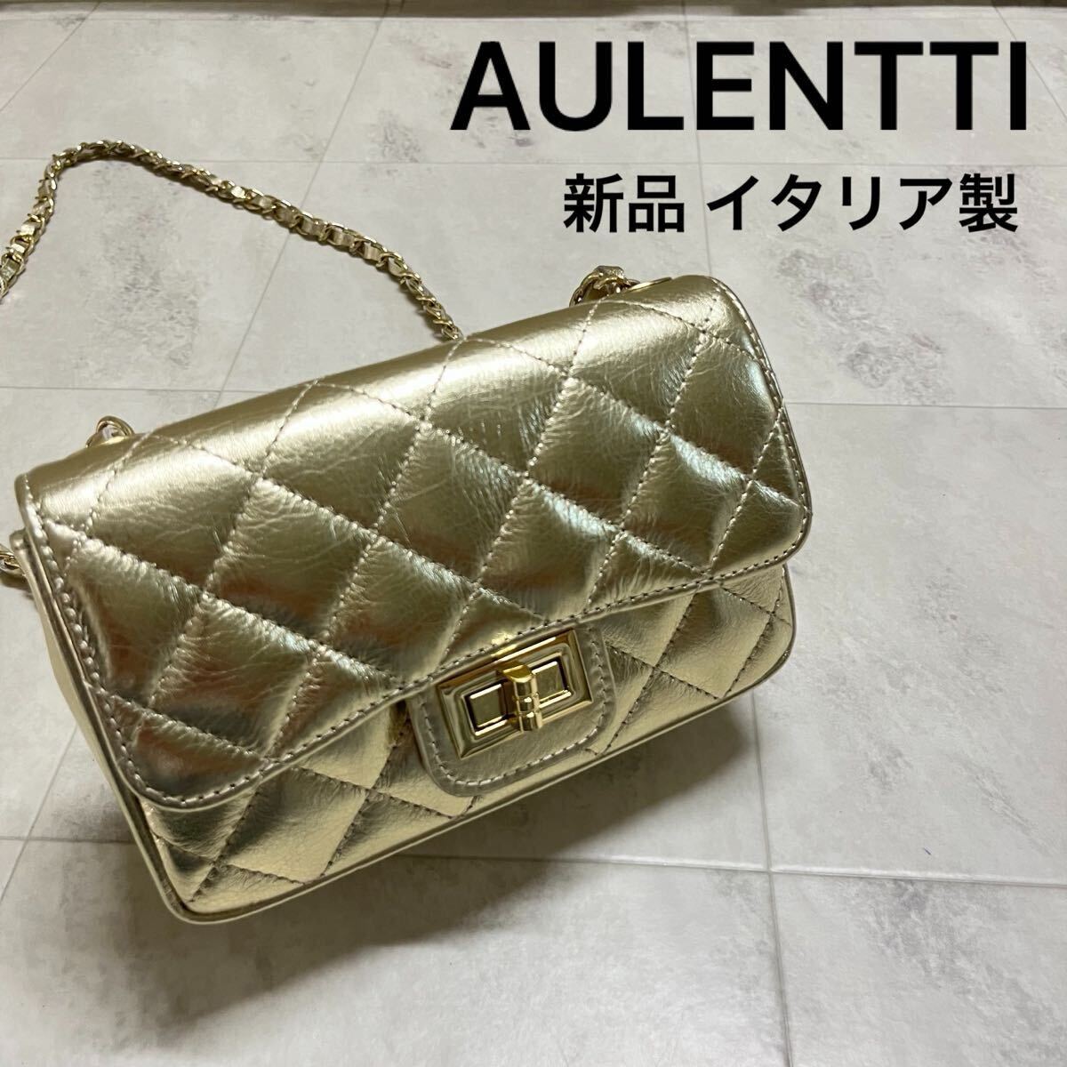 新品 イタリア製 AULENTTI オウレンティ レザー ショルダーバッグ キルティングレザー ゴールドチェーン ポシェット 肩掛け 斜め掛け ファクトリーブランド 定価17600 ゴールド 玉ya1023