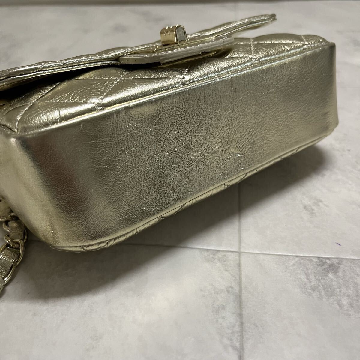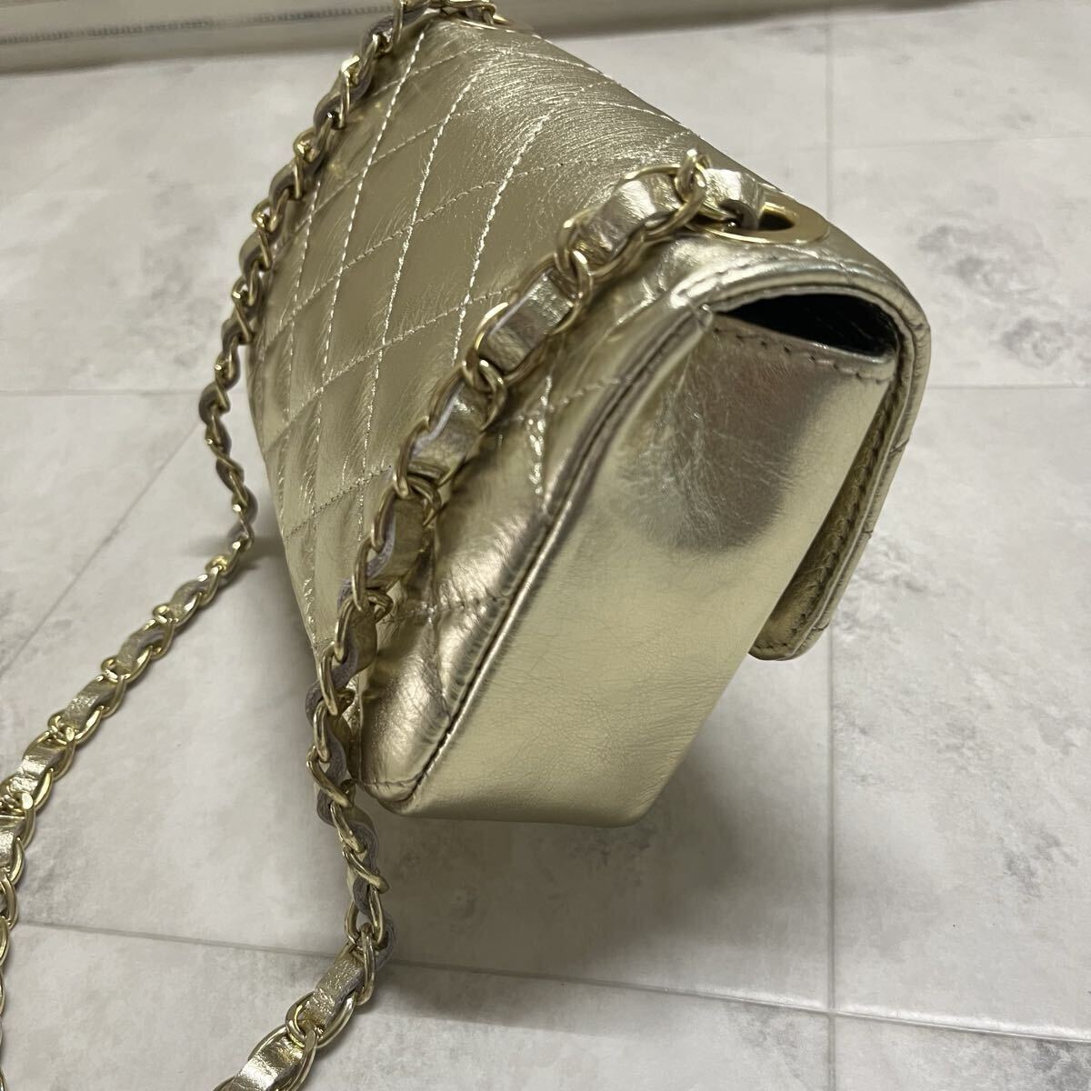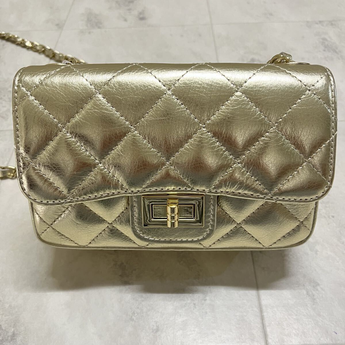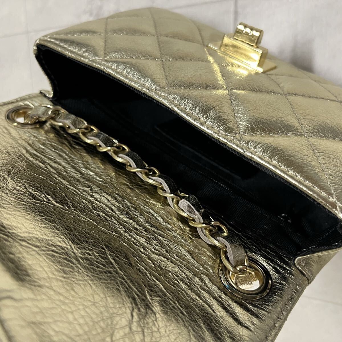 新品 イタリア製 AULENTTI オウレンティ レザー ショルダーバッグ キルティングレザー ゴールドチェーン ポシェット 肩掛け 斜め掛け ファクトリーブランド 定価17600 ゴールド 玉ya1023
