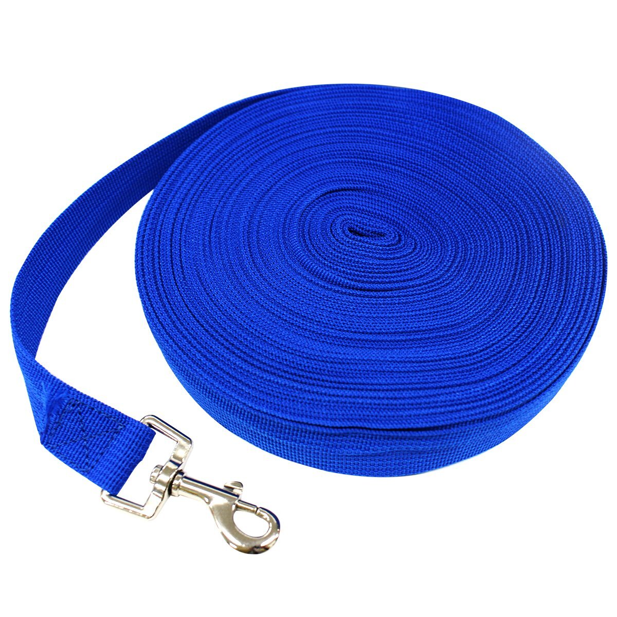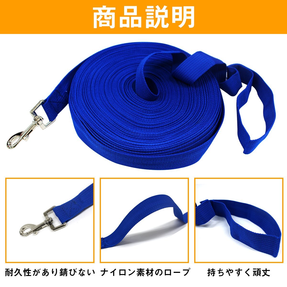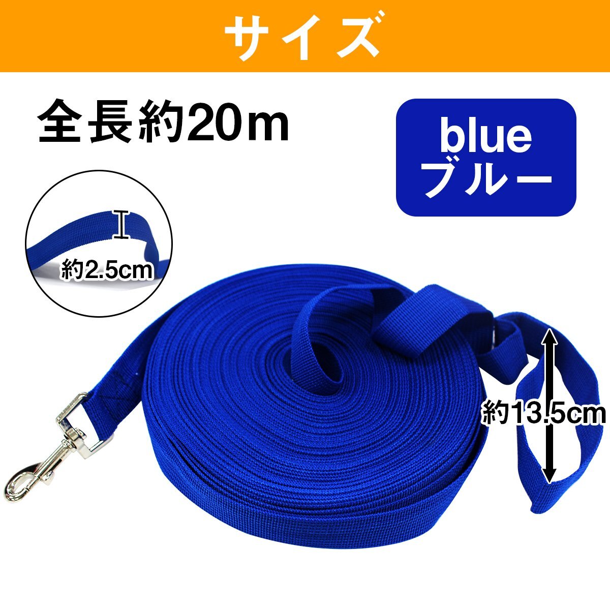【送料無料】犬用 ロングリード 20m 幅2.5cm 耐荷重 50kg ブルー 青 ハーネス リード 散歩 紐 ナイロンベルト 小型 中型 大型犬 ペット 犬