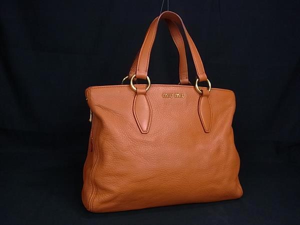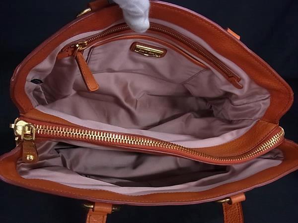 1円 ■美品■ miumiu ミュウミュウ レザー ハンドバッグ トート ショルダー 肩掛け レディース オレンジ系 FN8587