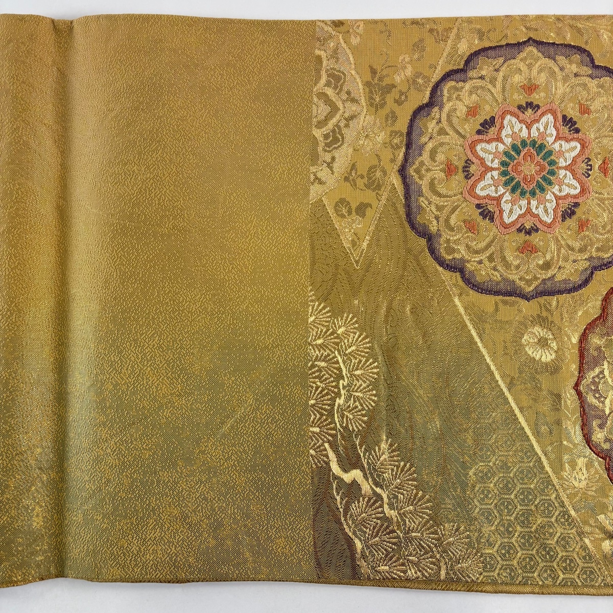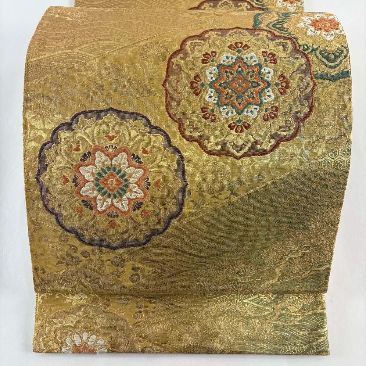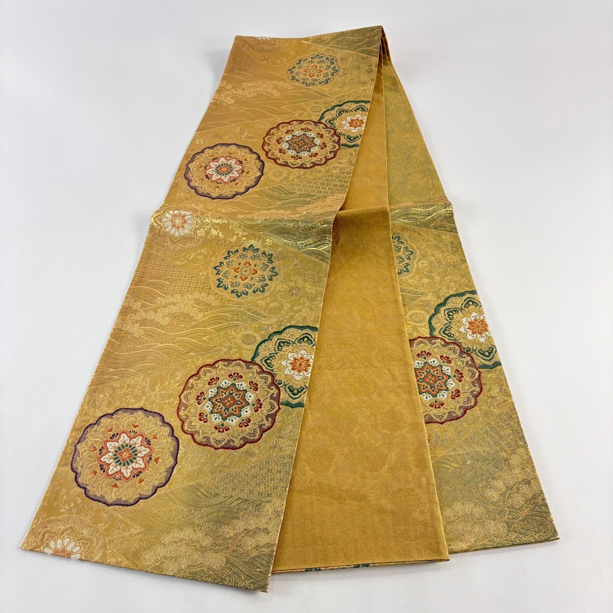 | 袋帯 秀品 華文 波 金糸 箔 金色 六通 正絹 【中古】 |